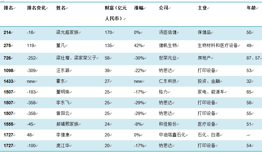 中油塔鑫石化李健康则以20亿跨入门槛,并列1727位,成为榜单“守门员”之一。