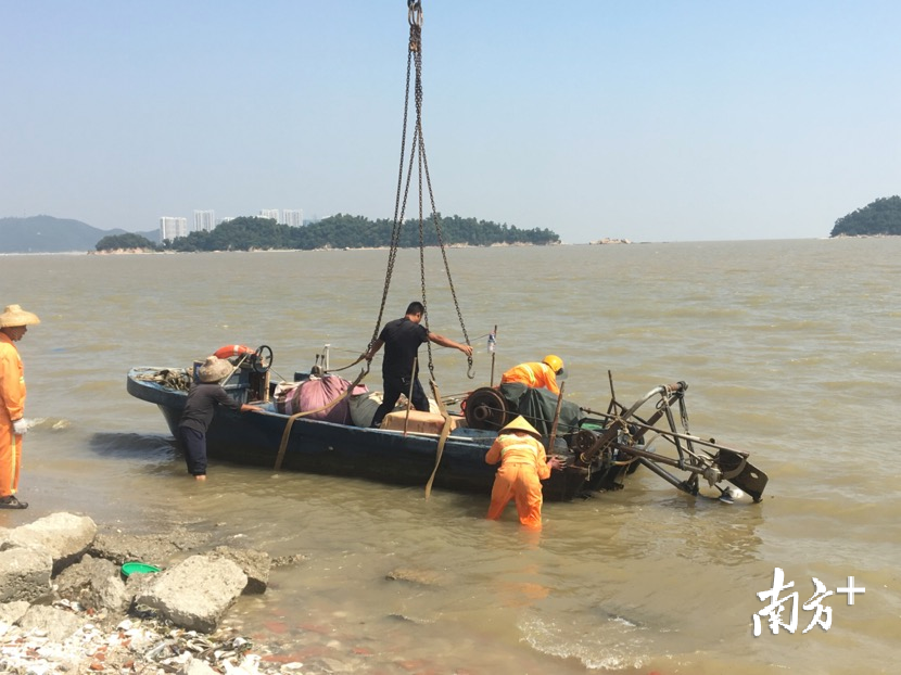 日前,高新区对银坑周边近海水域乱象开展治理行动。此次行动共出动工作人员和清理人员共60人次,清理“三无”船12艘、吊上岸渔船4艘、2艘渔船凿穿在海边,达到严厉打击三无渔船、震慑违法捕捞和乱停乱泊行为的预期效果。