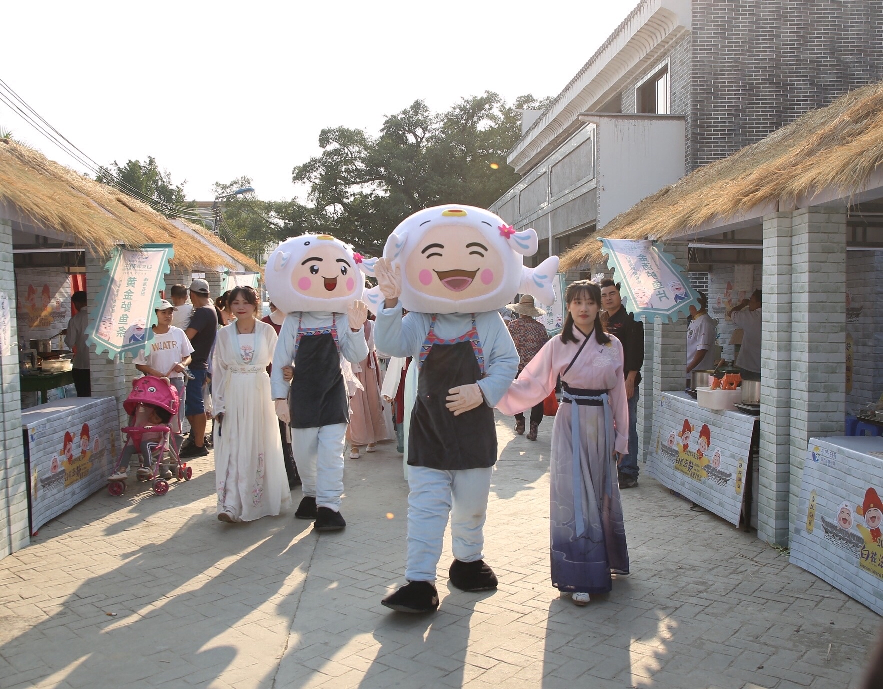 晨风中旗幡招展,彩带飘扬,古色古香的巷道两旁,伙计们挑起幌子,吆喝招徕生意,身着汉服的男女老少穿行其中……这个仿佛穿越回古代市集的画面出现在11月9日的白蕉镇虾山村里。由珠海市斗门区白蕉镇人民政府主办的2019年第三届“白蕉海鲈”旅游文化节在这里拉开帷幕。