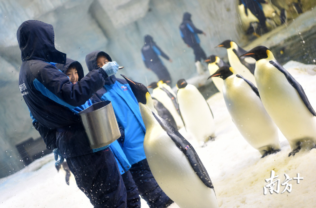 记者从珠海长隆海洋王国获悉,8只小帝企鹅于今年内成功繁育。11月25日,珠海长隆海洋王国邀请来自广州南方小记者以及珠海容闳小学的学生代表进入企鹅馆内,给小帝企鹅们喂食。