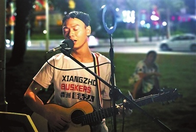 “以为告别还会再见,哪知道一去不还,我不知道我还有多少相聚分别,就像这列车也不能随意停歇……”傍晚时分,在情侣路边,一名男青年拨动着吉他,倾情弹唱着中文版《车站》,其歌声时而清脆悦耳、时而婉转悠扬,令人回味无穷。