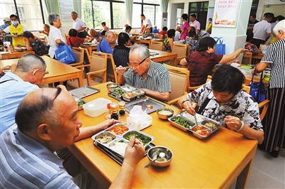 在长者服务中心,最吸引人的是一进门的长者饭堂,记者看到当天中午的配餐有三菜一汤:三鲜肉丸、咸鱼茄瓜、油淋小白菜和黄豆菜干汤。87岁的何大妈和90多岁的老伴坐了三站公交车过来吃饭。“我们以前就住在附近,搬了新房子后还是喜欢回到老小区活动,这里有很多老朋友。尤其是新建了长者服务中心后,我们来这里量个血压吃个中午饭都很方便的。”何大妈告诉记者。