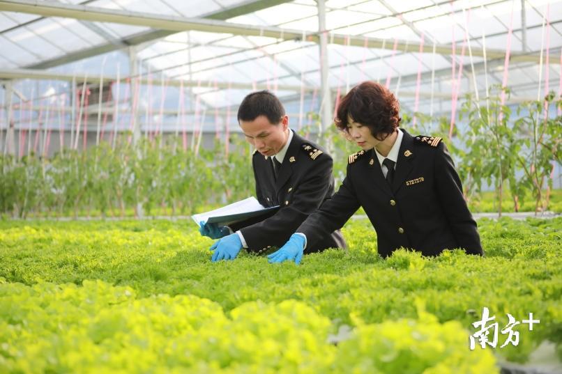 “我们每个月都会来这里巡查,主要是查看生产记录、病虫害防治情况等,同时检查这些蔬菜的生长情况以及种植过程中是否存在违规施药等问题。”拱北海关所属香洲海关查检科关员丘丽欢一边检查一边说。