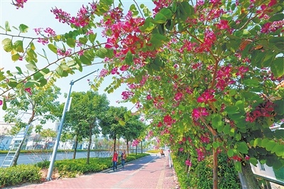 12月的斗门区暖阳高照、姹紫嫣红:黄色的黄花槐、橙色的硫华菊、粉色的异木棉、紫色的紫荆花、红色的簕杜鹃陆续盛开,让冬日里的斗门区呈现五颜六色的美丽景色。经过“三化”“三城”建设,斗门区基本形成“花开四季”的城市绿化景观效果,群众的幸福感、获得感显著提升。