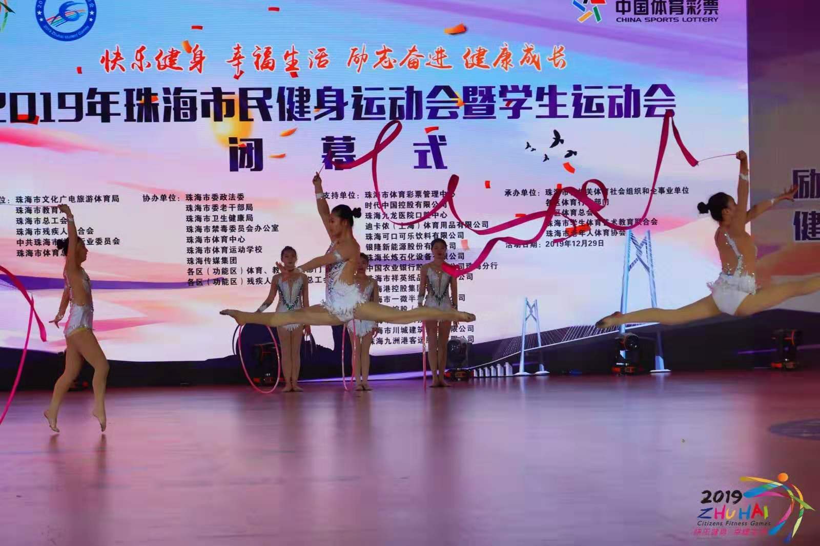 闭幕式上,本届市民健身运动会少年儿童组的学生们献上了舞龙表演、拉丁舞、第九套广播体操、艺术体操等精彩节目,展现了珠海青少年学生朝气蓬勃、昂扬奋进的精神风貌。与此同时,市民公开组、残疾人组、职工组、老年人组均选派节目参与闭幕式展演。