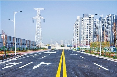 记者在现场看到,新铺的造贝路北延段主车道为沥青罩面的双向四车道,与两侧人行道之间设置了隔离绿化带,并预留了港湾式公交车站,整条路美观大方。