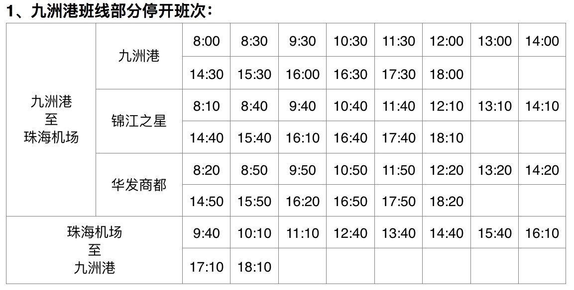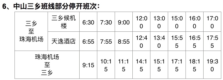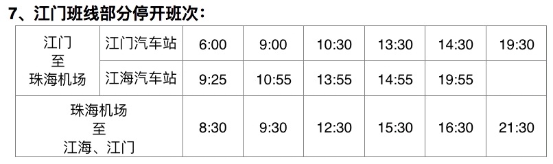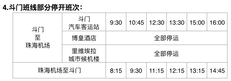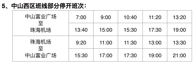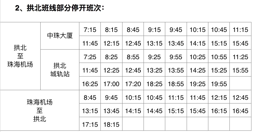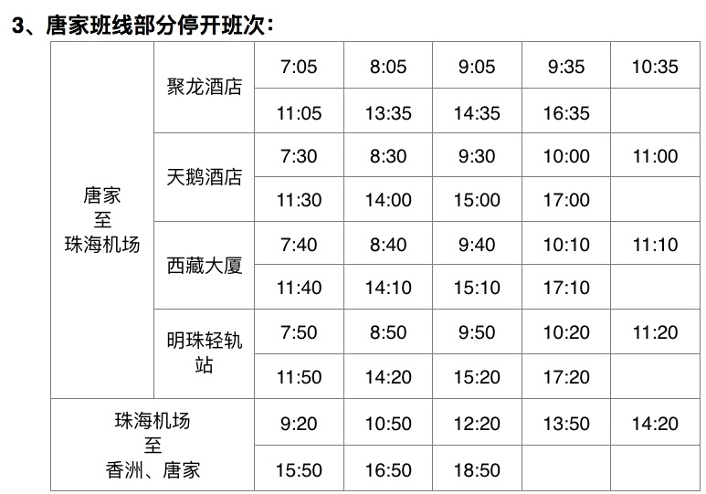 三、以下珠海机场快线部分班次停开