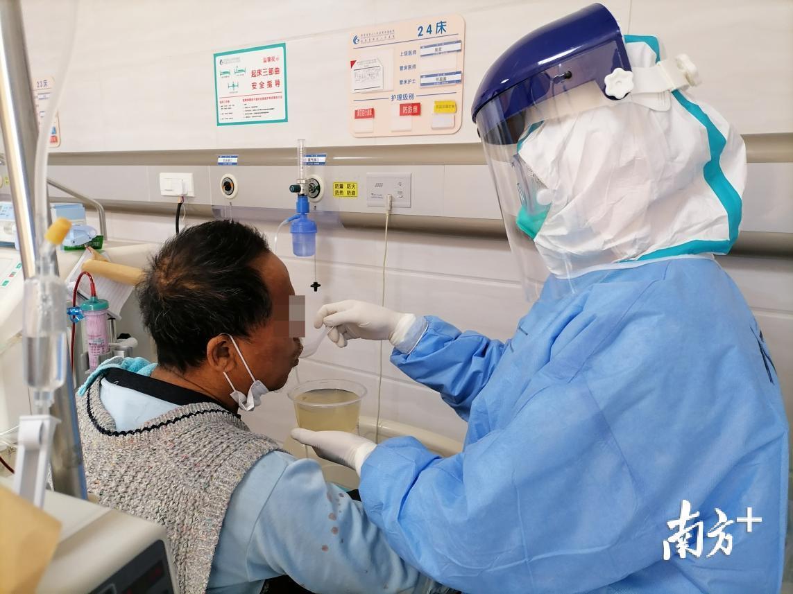麦彩娟一直坚守在患者身边,密切监测生命体征。 患者不能进食饮水,麦彩娟便给患者喂食,一直从早上8点忙到下午7点。“现在物资紧缺,防护服能省就省,穿戴好防护服便是从早到晚......”从病房出来,麦彩娟连话都说不出来了。