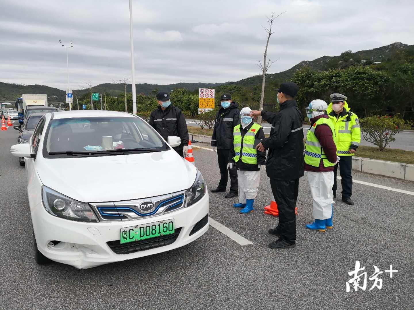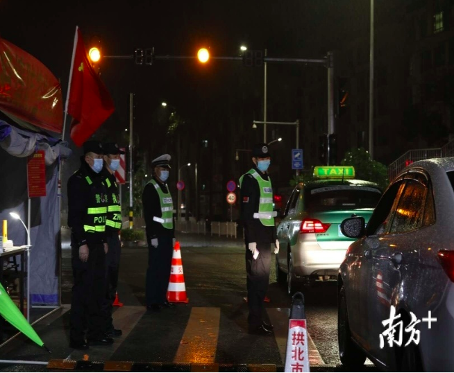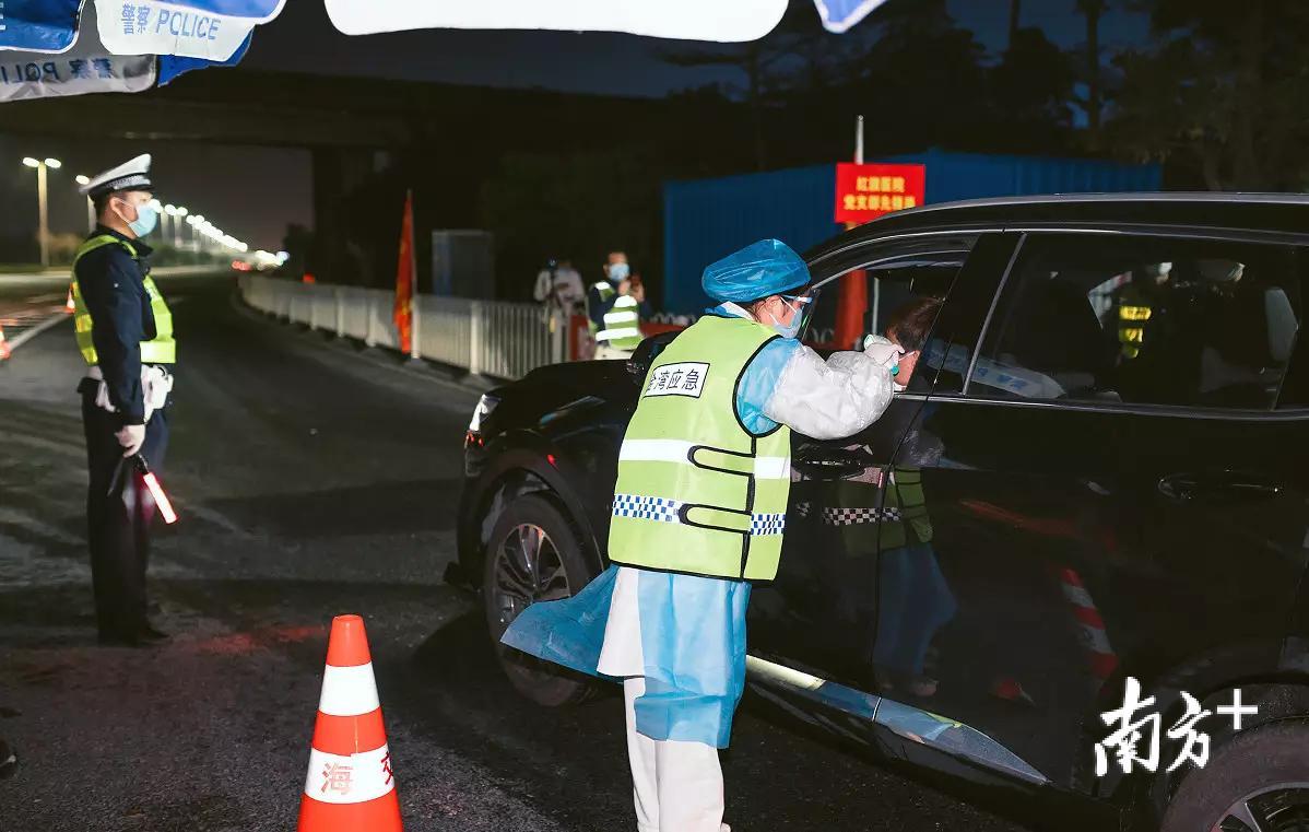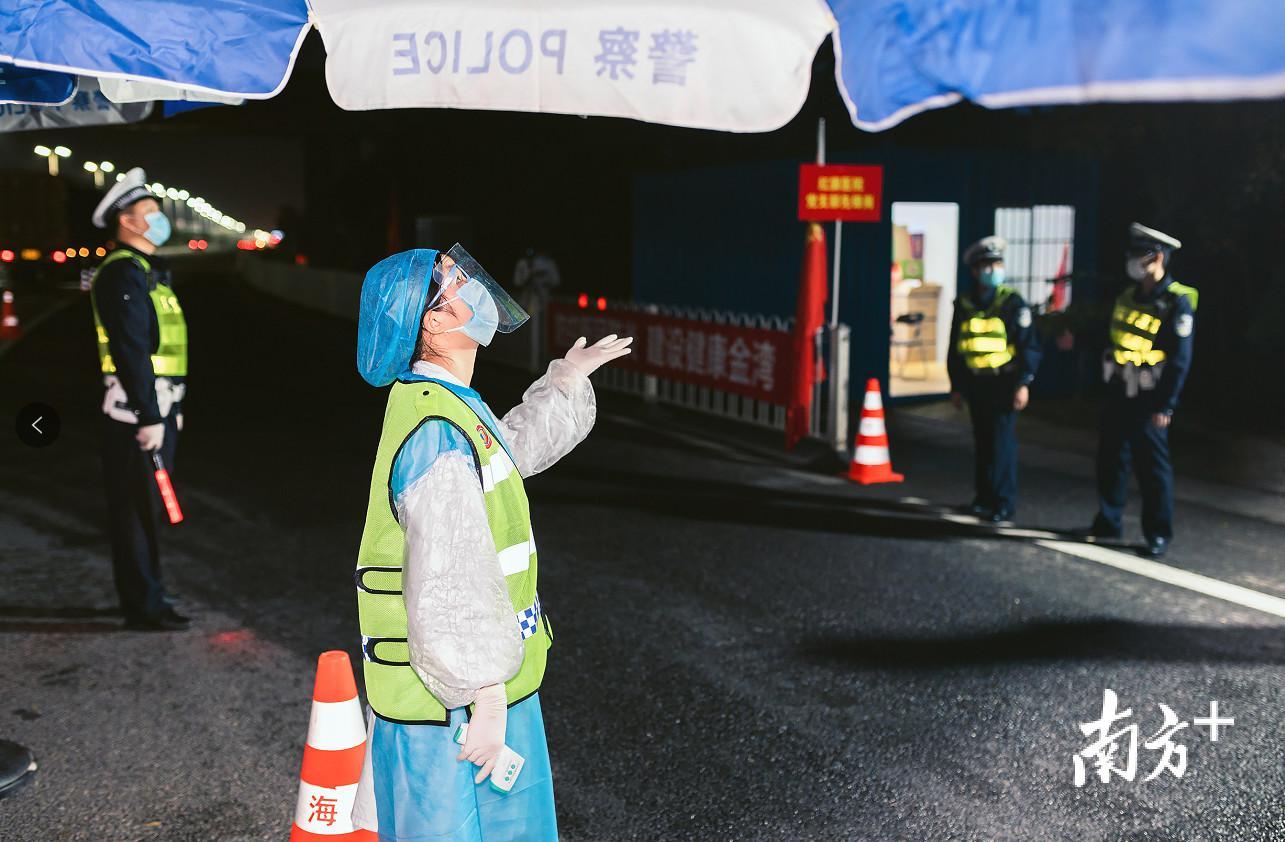 在机场高速两个出口的防疫检查卡点,空旷的户外寒风格外凌厉。针对现场通行车辆堵塞等问题,金湾公安分局党委委员、副局长单鹄和巡警大队队长谢少彬早早来到现场,召集巡警、交警、派出所、交通、卫生等相关部门召开现场会,通过规范划分拦车区、查验区、登记区,隔离区,提高了查验的质量、速度和效率。
