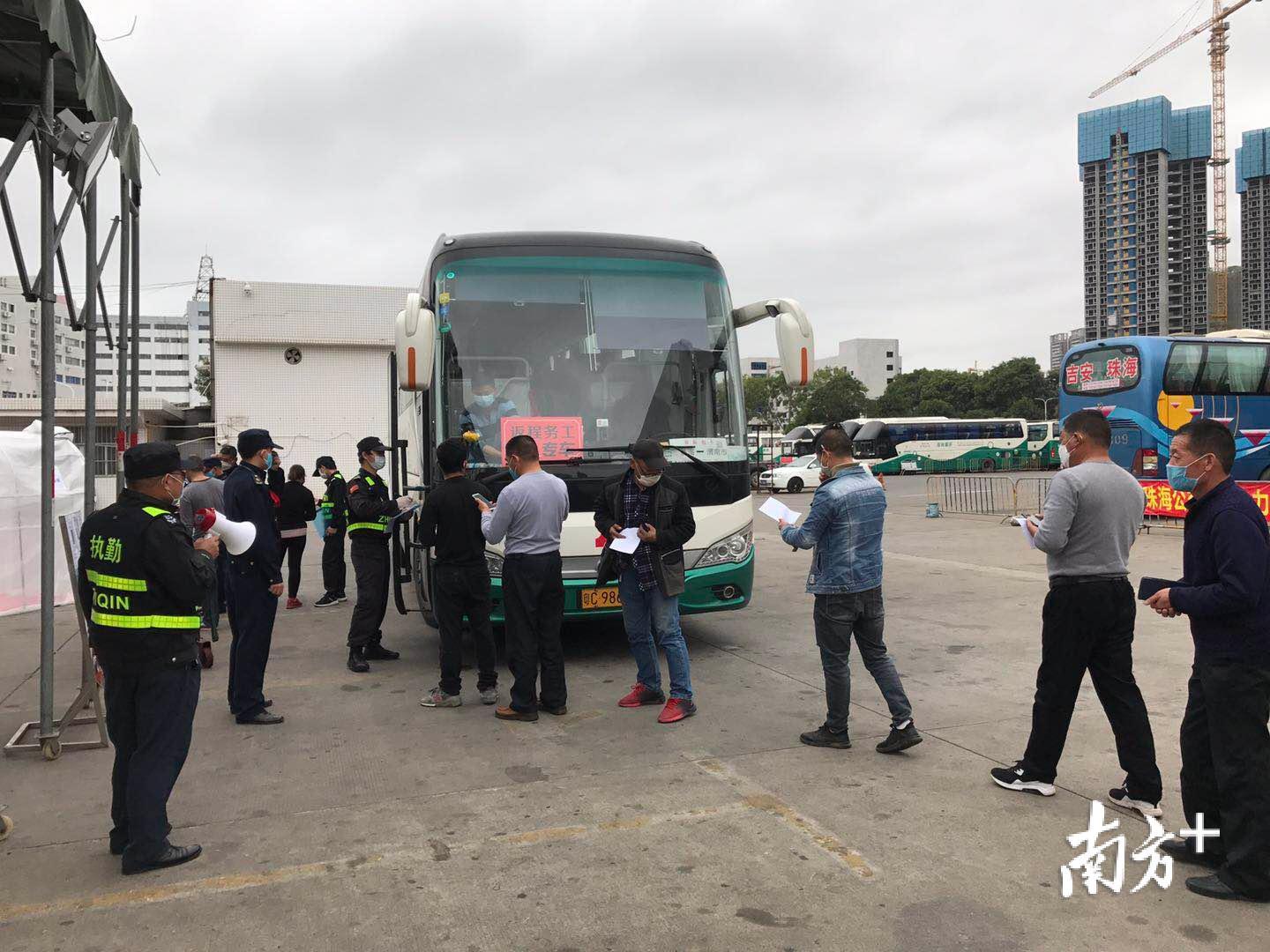 承包此次接运的珠海公交信禾股份运输有限公司相关负责人表示,跨省跨地区运送人员,手续比较繁琐,该公司已提前做好相关工作,包括包车证、防疫手续的办理。“如果没有这个包车证,离省后很可能会遭遇罚款、扣车。”针对乘车的复工人员,上车后要严格实施体温测量,按要求佩戴口罩,人员隔开(一人一排座位),包车返回珠海后,按要求消毒。