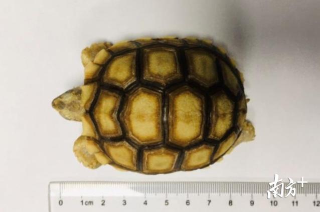 经华南动物物种环境损害司法鉴定中心鉴定,该疑似陆龟品种为苏卡达陆龟,是濒危物种,被列入《濒危野生动植物种国际贸易公约》保护范围。