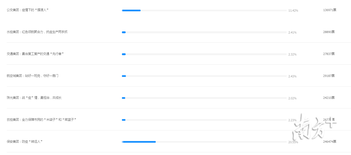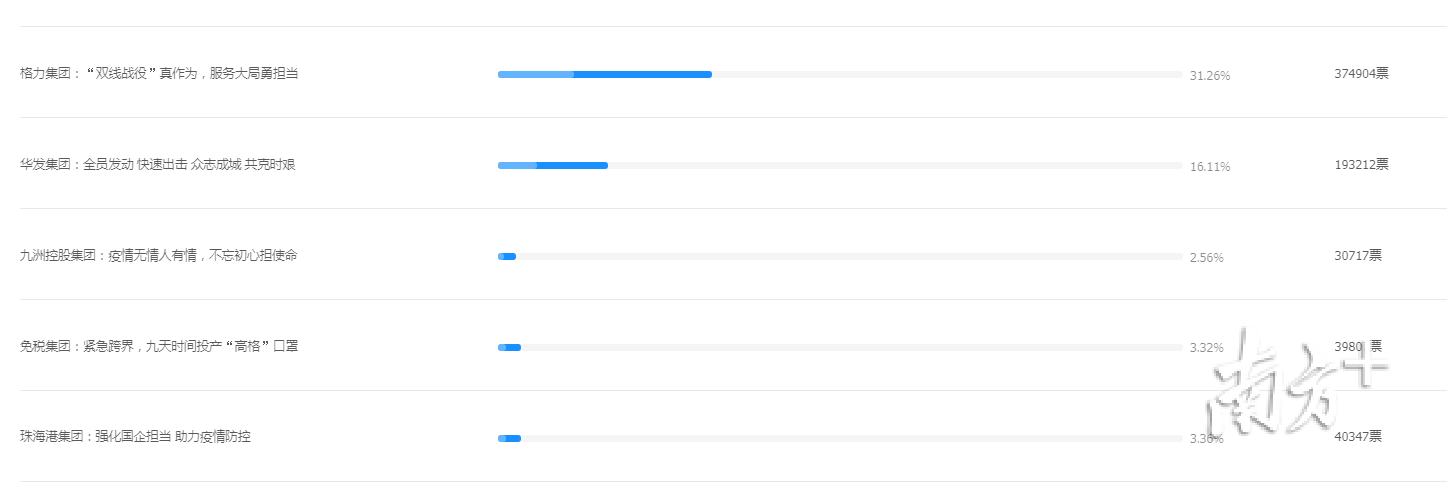 其中,格力集团收获最多点赞,总数超37万,占比达31.26%;保安集团排名第二,总点赞数超24万;华发集团排名第三,总数超19万。