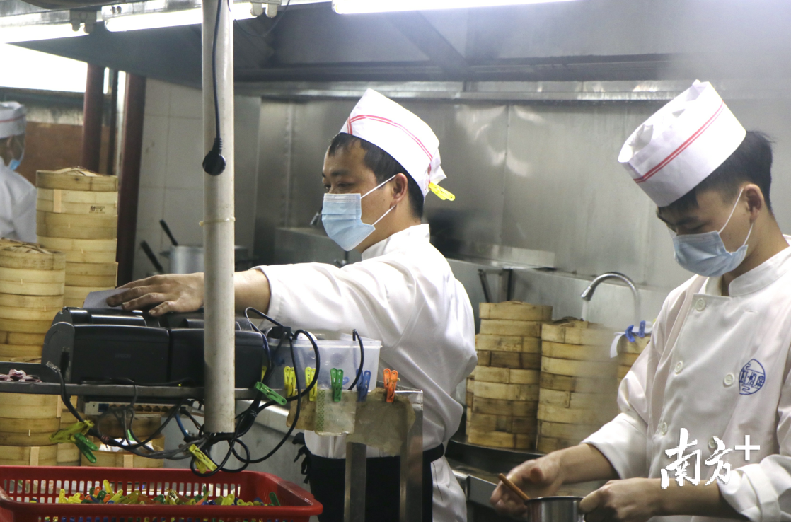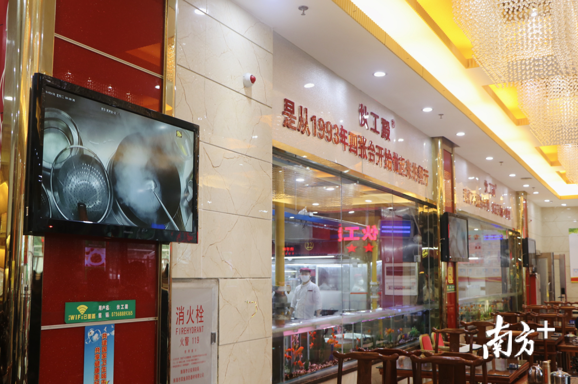 巨大的透明玻璃窗、清晰的烹饪显示屏,顾客在伙工殿餐厅用餐时,后厨环境一目了然。“要让客人感到卫生和安全,我们把明厨亮灶、进货渠道、员工卫生、下水道清洁各个方面都尽力做到最好。”珠海伙工殿餐厅总经理邵力说。