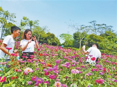 除向日葵外,园区内的孔雀草、火炬、百日草、大花海棠也迎来最佳观赏期。
