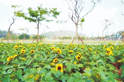 据陈晓娟透露,这些少见的向日葵品种,全是本地培育,由粤华公司的苗圃播种育出小苗后运到公园种植,这样既保证了成活率又节约成本,苗本比盆栽移植的茁壮,成花效果好且花期长。