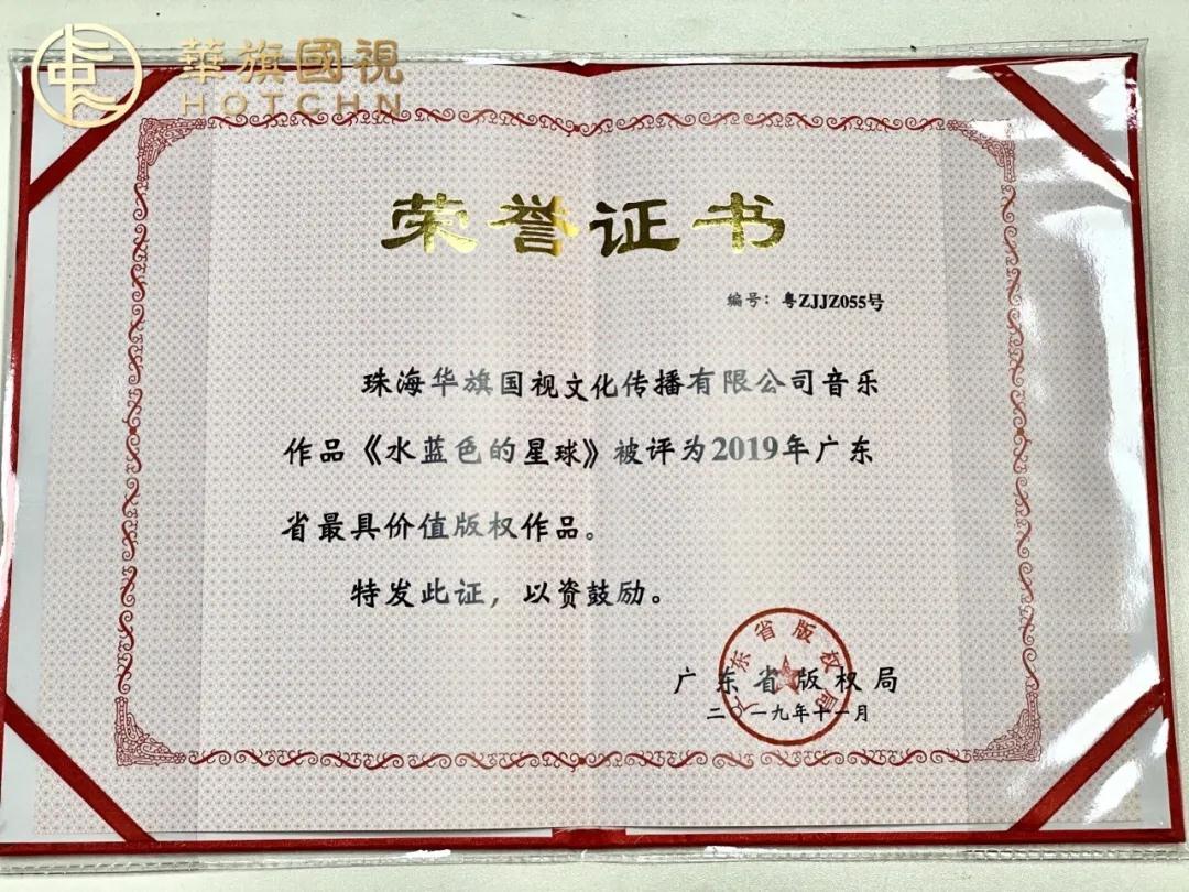 记者15日从广东版权网获悉,为进一步推动广东省“版权兴业工程”,广东省版权局开展了2019年度“广东省版权兴业示范基地”和“广东省最具价值版权作品”评选认定及扶持工作。经初审、复审、实地考察及终评等环节,共评选出“广东省版权兴业示范基地”5家、“广东省最具价值版权作品”20个,珠海华旗国视文化传播有限公司出品的音乐作品《水蓝色的星球》入选,且系珠海市唯一上榜的作品。