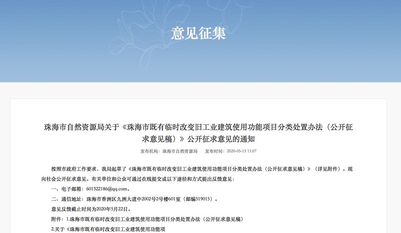 促进珠海产业空间布局优化和结构调整,提高土地使用效益,妥善处置既有临时改变旧工业建筑使用功能项目(以下简称“既有临改项目”),南方+记者从珠海市自然资源局获悉,《珠海市既有临时改变旧工业建筑使用功能项目分类处置办法(公开征求意见稿)》(以下简称《处置办法》)正式向公众征求意见。