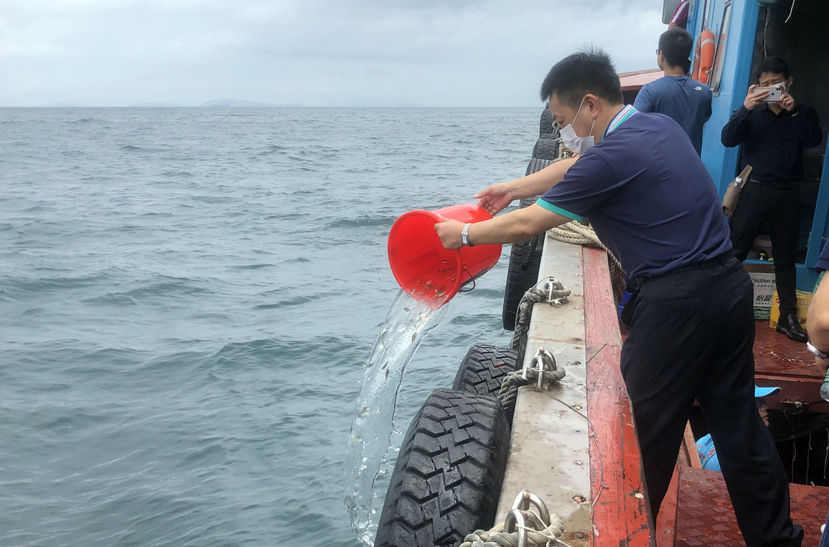 5月20日上午,万山区在庙湾海洋牧场示范区海域开展2020年度第一批渔业增殖放流活动,共投放近800万尾斑节对虾幼苗和黑鲷鱼苗,为维护当地渔业水域生态平衡注入了新鲜血液。据了解,这也是万山区首次在庙湾海域开展增殖放流活动。