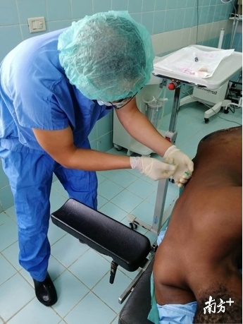 “在国内为病患打麻药都有一个完整配套的麻醉包,然而在非洲那边并不具备这种条件,只有一双手套、一根腰麻针、一个注射器,用自制棉球蘸酒精消毒以后就进行穿刺。”孟凡建说,没有条件,大家只能够尽力创造条件,有的同事甚至学会了使用当地特色的“手摇式”医疗设备。