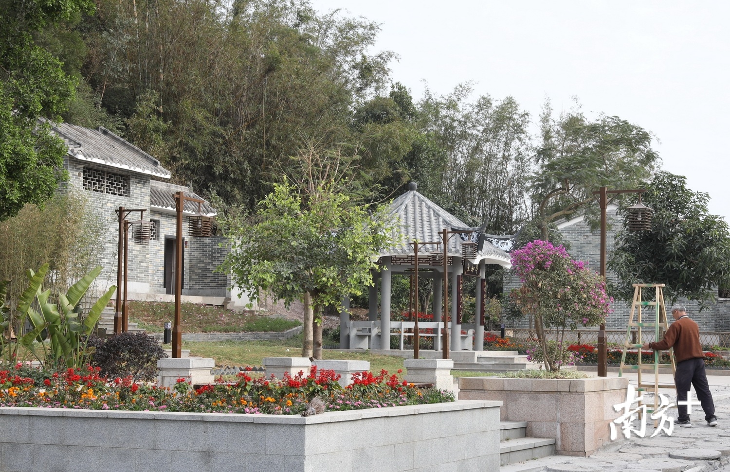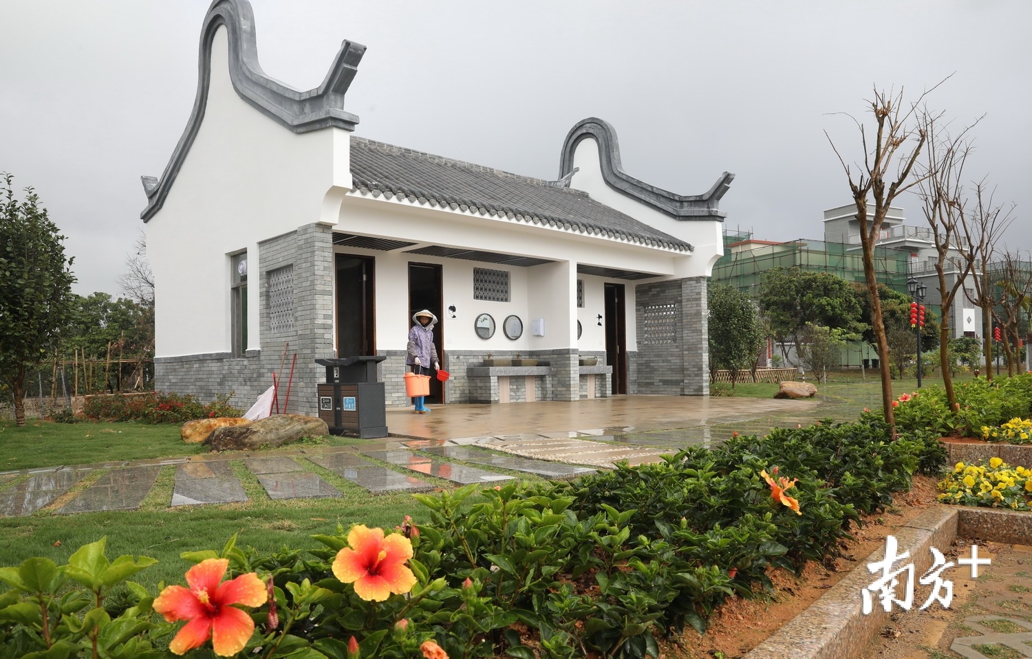 斗门莲江村公厕坐落在村中小公园里,绿树红花环绕,休闲宜人