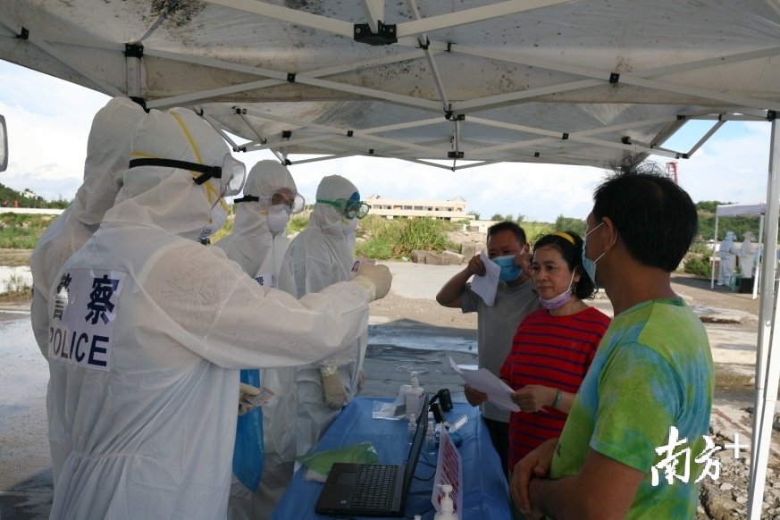 万山边检站边检处民警王晓民介绍,所有从万山边检站入境开渔的港澳流动渔船要经过四步查验:一“问”,问流动渔船最近靠岸时间,船员有无核酸检测结果,有无身体不适;二“测”,测量体温是否正常,进行核酸检测;三“验”,核验流动渔船民身份证件,办理出入境手续;四“引”,引导流动渔船按区位停泊。在确保驾船船员检测结果为阴性后,分批次安排核酸检测结果同为阴性的渔工登船开渔。
