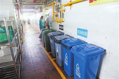 当天9时,拱北益健名厨海鲜城,在其二楼的厨房过道上,整齐摆放着一排排四分类垃圾桶,地面非常干净,闻不到一丝异味。“以前的垃圾都是混在一起的,自从推广垃圾分类以后,厨房产生的所有垃圾都是分类投放。”益健名厨海鲜城餐饮负责人徐子权告诉记者,“垃圾清运企业每天清晨6时前来收运厨余垃圾,我们会提前安排保洁人员对餐厅的餐厨垃圾进行二次分拣,确保垃圾分类真正实施到位,再由驳运中转企业珠海市洁康清洁环保有限公司工作人员将餐厨垃圾桶拉走。”