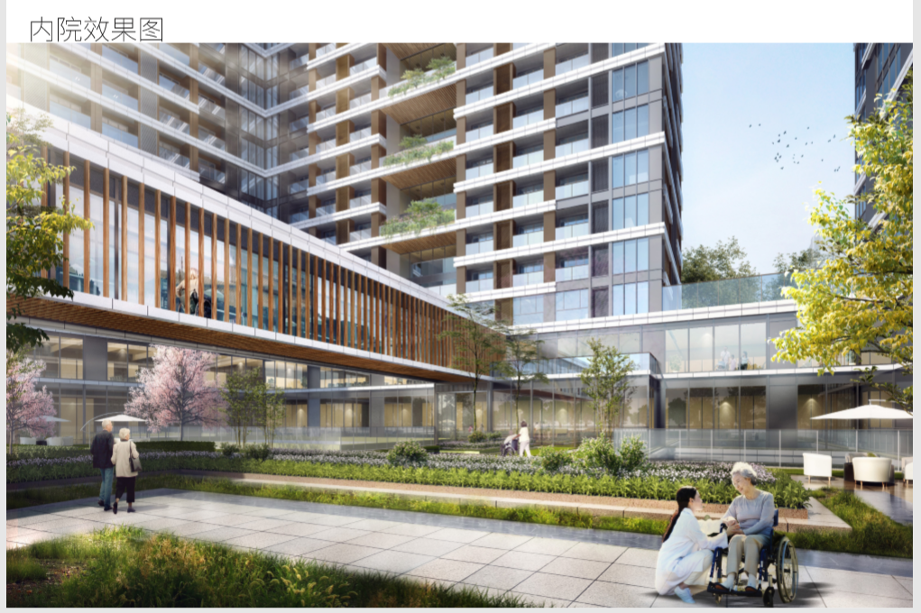 另外,两层裙房将设置接待中心、康体中心、娱乐中心、餐饮中心等,满足长者日常生活休闲娱乐的需求。