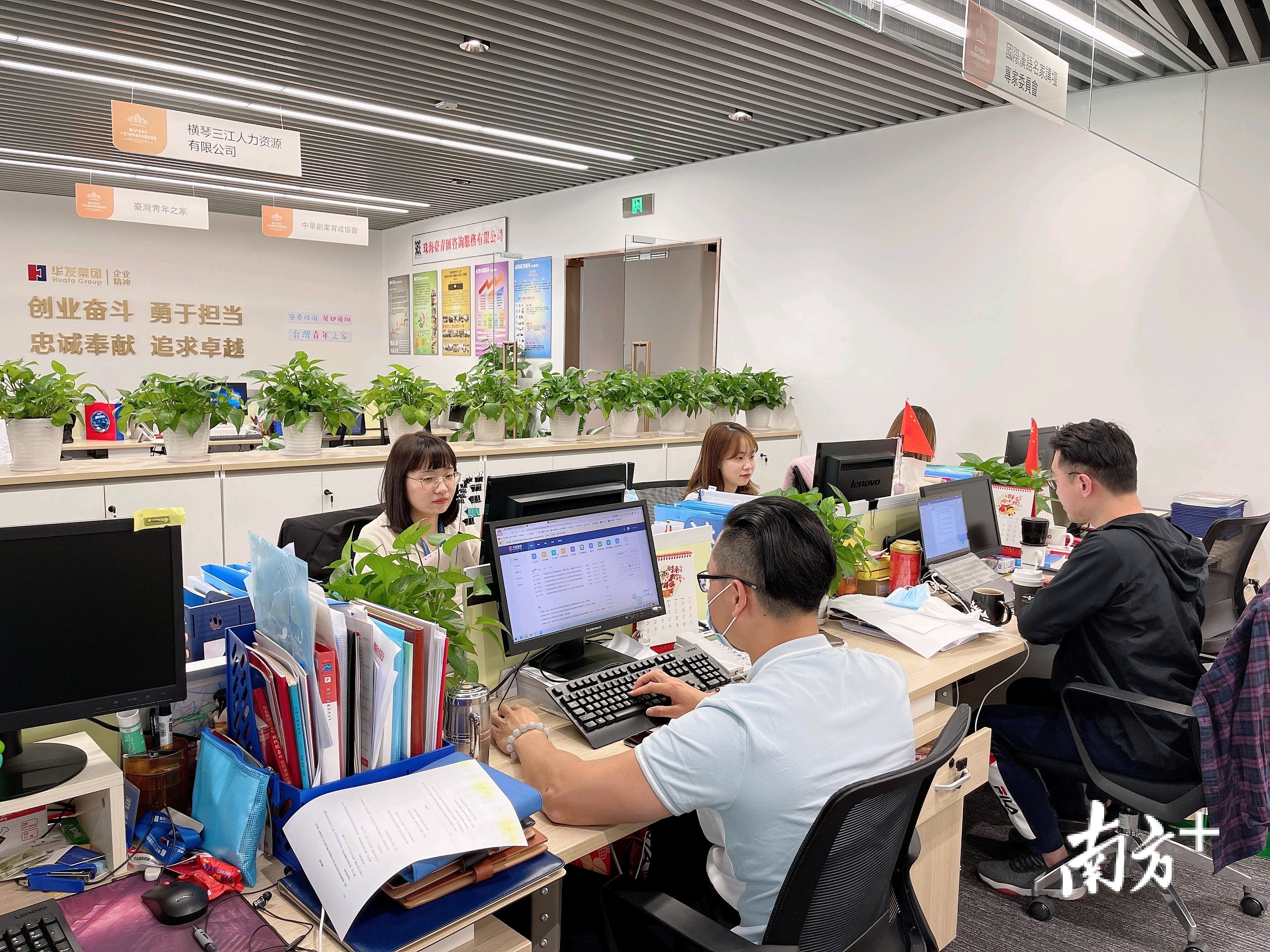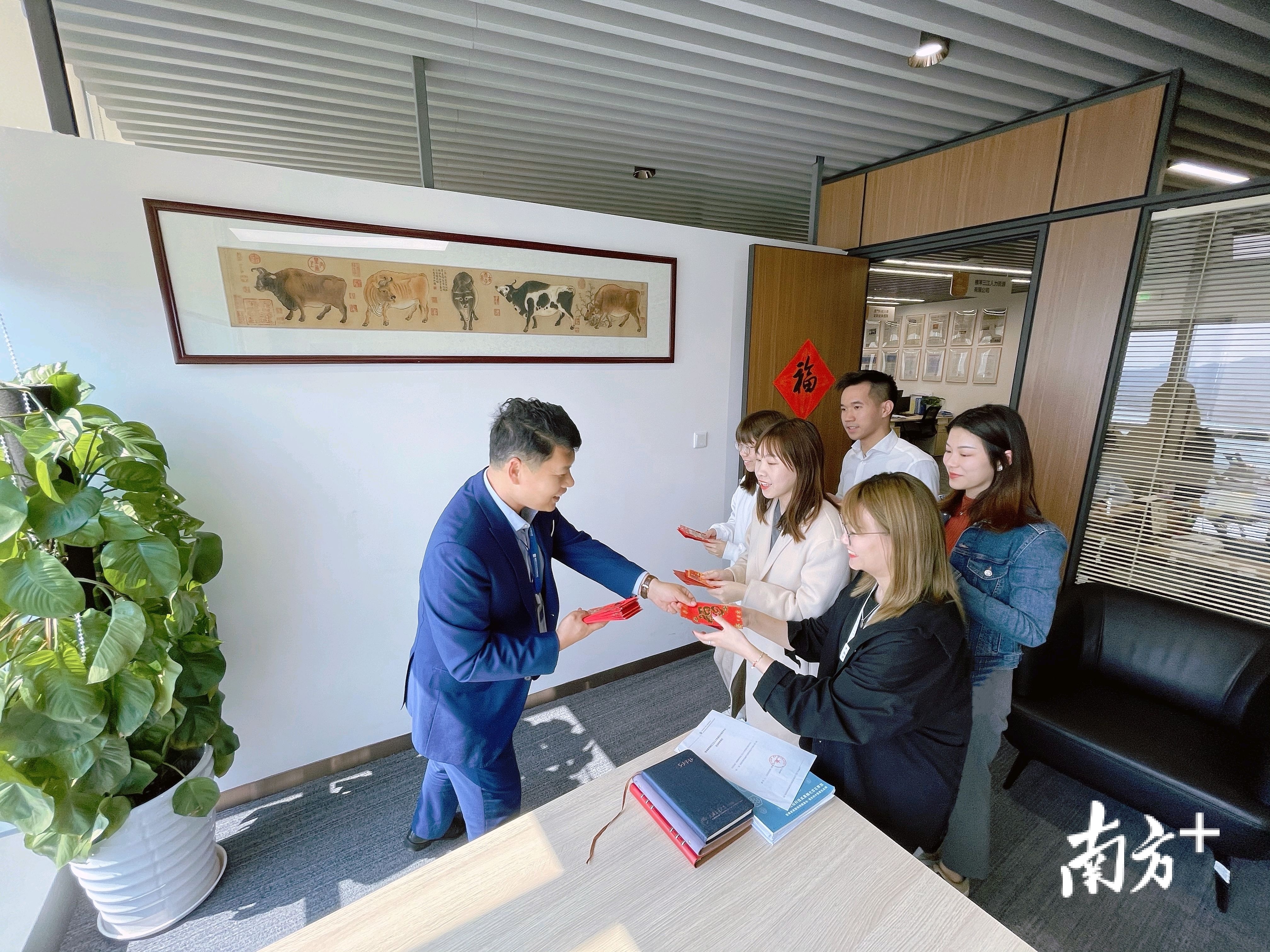 珠海三江人力资源公司员工逗完利是,很快投入到工作中。