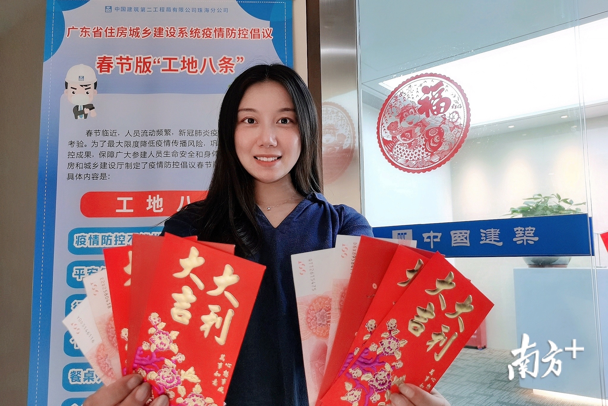 中建二局珠海公司员工展示收到的开门利是。
