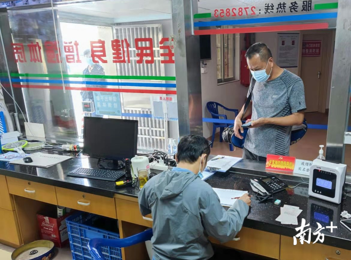 现场人工登记的绿色通道。(斗门区体育馆供图)