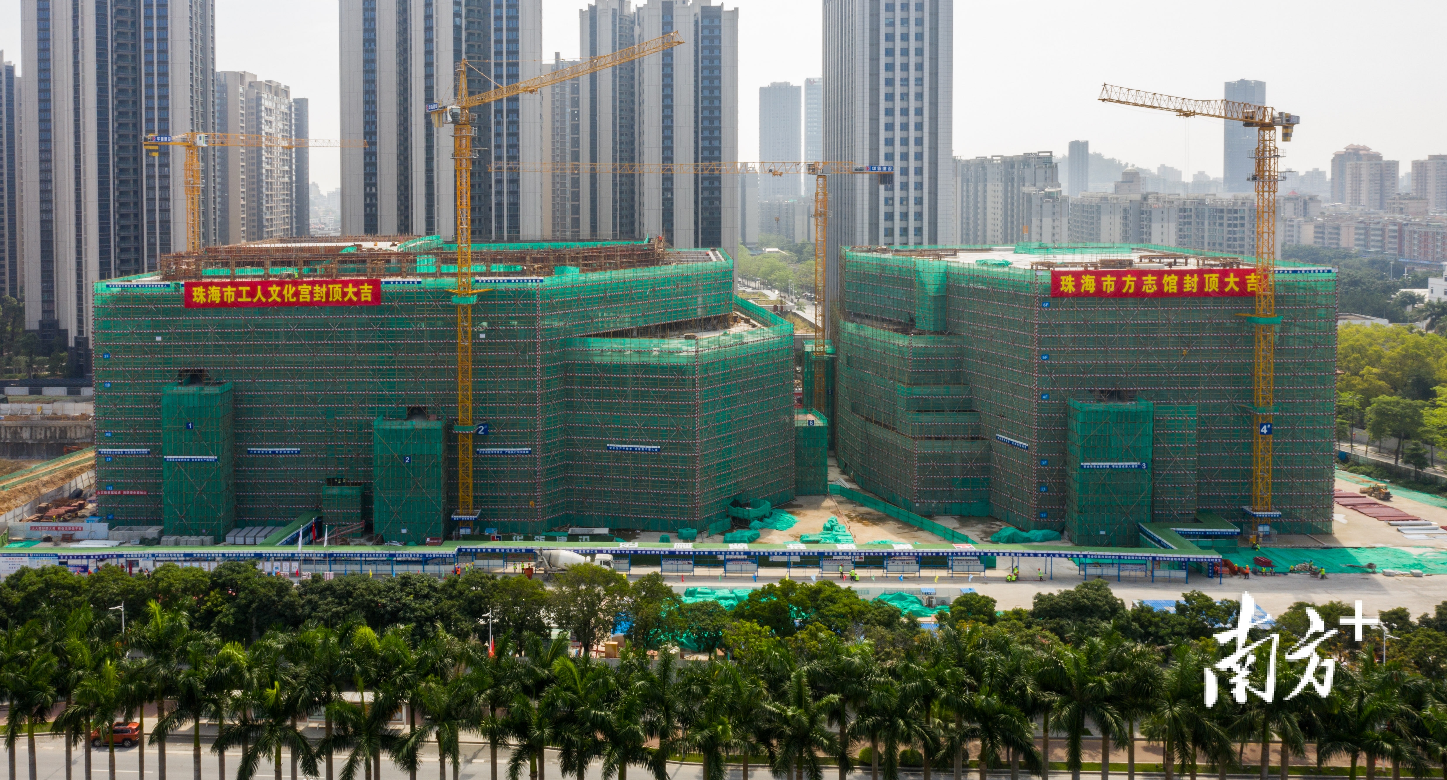 同期封顶的珠海市方志馆位于市工人文化宫项目南侧,建筑面积约2万平方米,建成后涵盖“四中心”“一基地”,包括城市综合展览展示中心、历史人文收藏保护研究中心、地情信息咨询与服务中心、史志文化学术交流中心以及红色文化和优秀传统文化宣传教育基地。