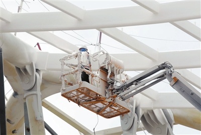 “由于钢架的曲面太多,我们需要对每根钢管、每片钢网都进行定制,这对拼接的精细度要求非常高。”何瓒介绍。