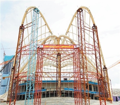 该节点的到来,也给在建的金湾区市民艺术中心赋予了新的外貌形态——巨大翼状钢架构正式落成,让这只“巨鸟”的腾飞姿态第一次展现在公众面前。