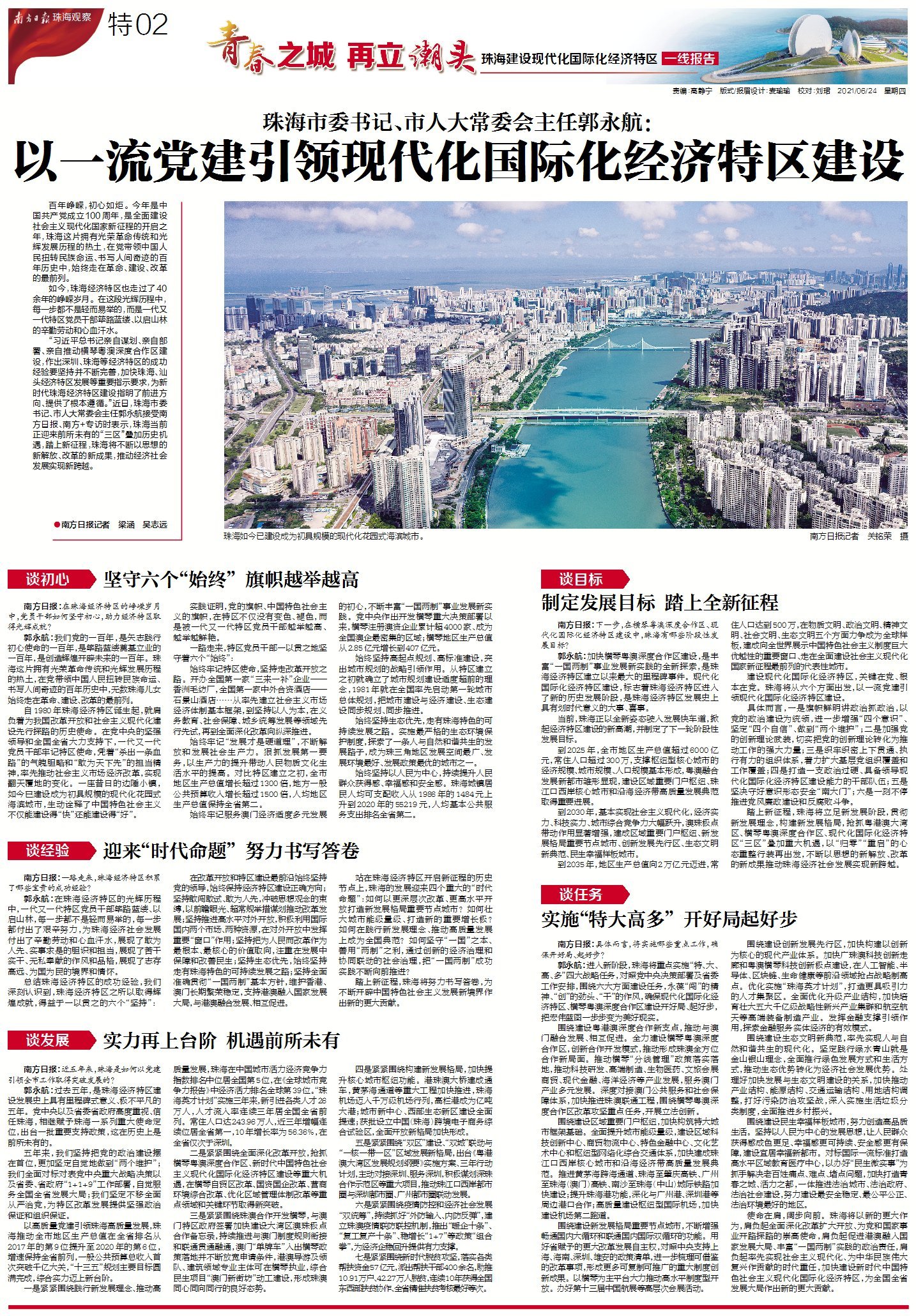 专访珠海市委书记郭永航:以一流党建引领现代化国际化经济特区建设