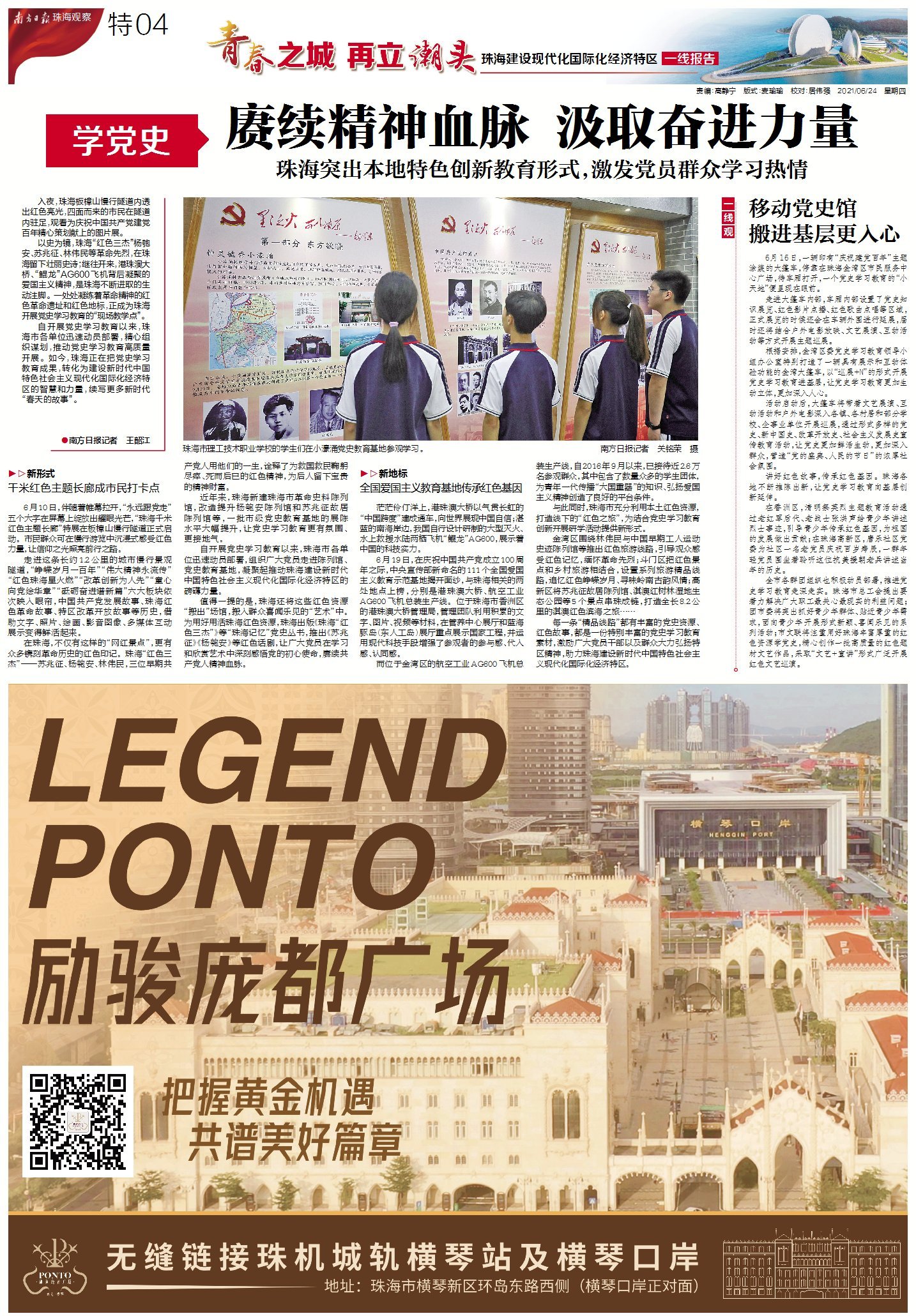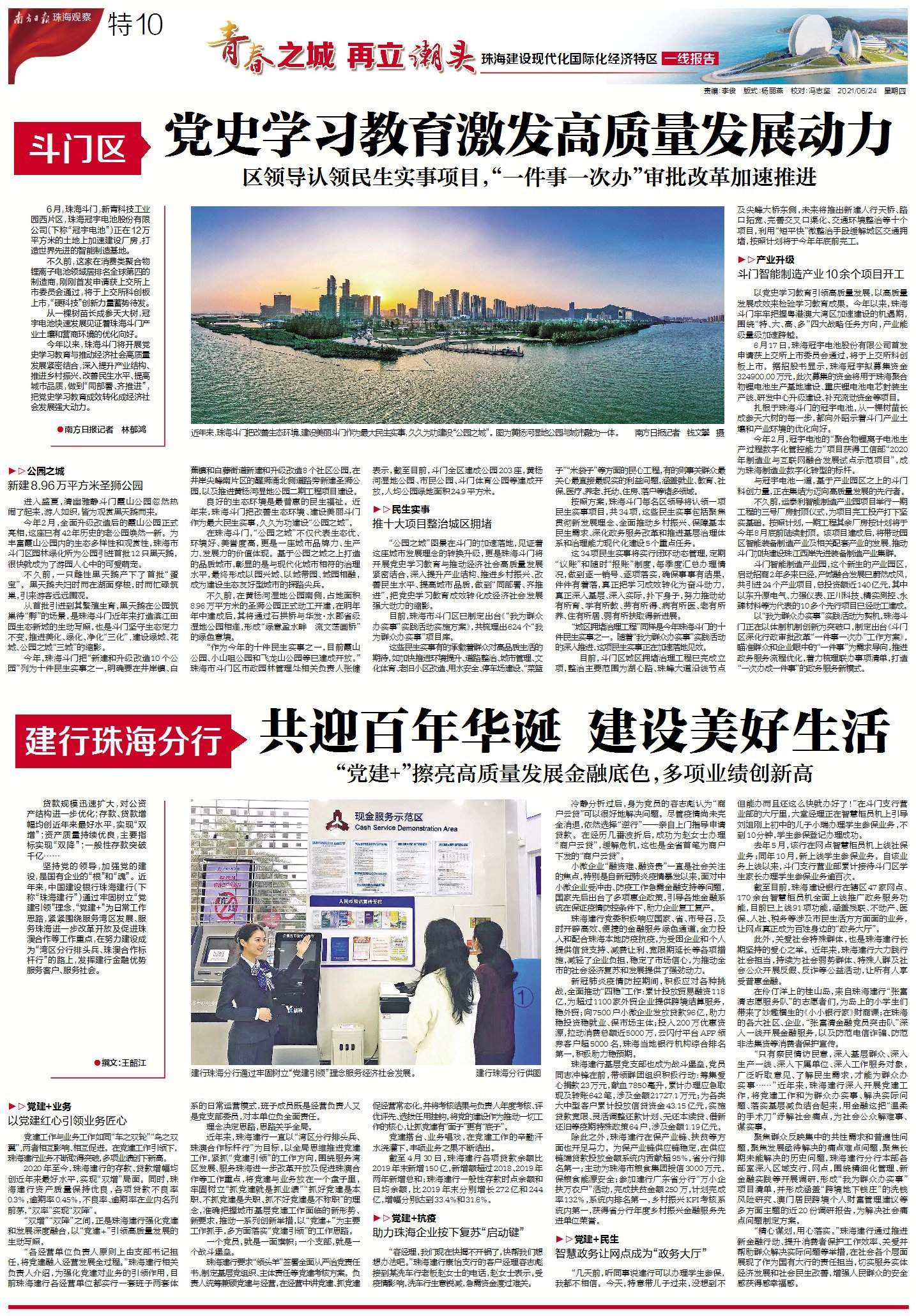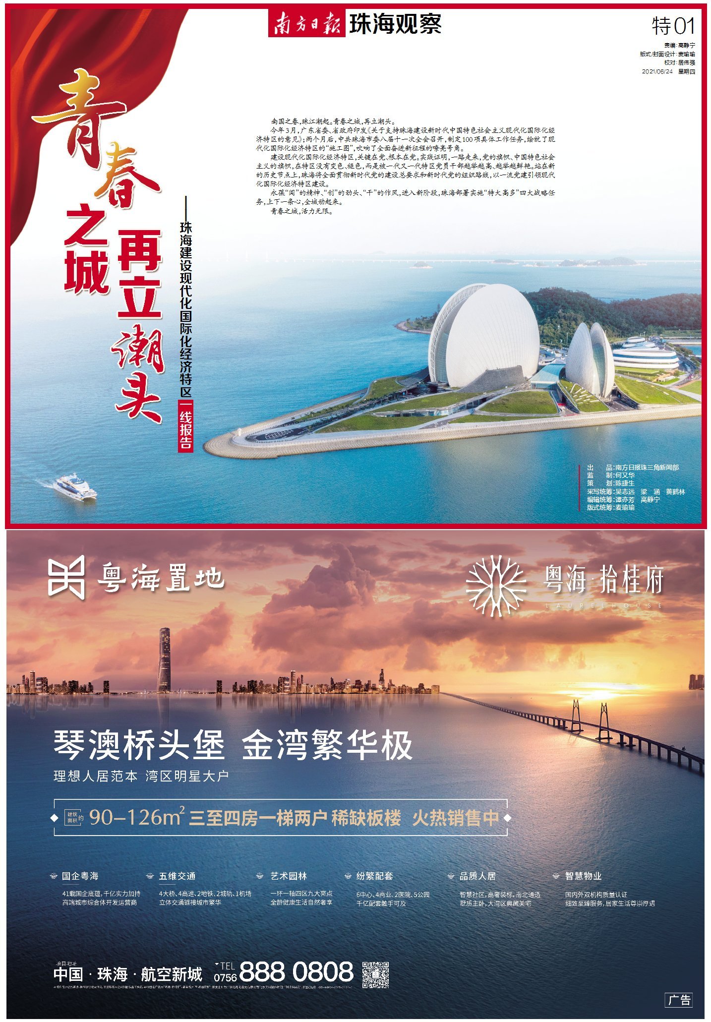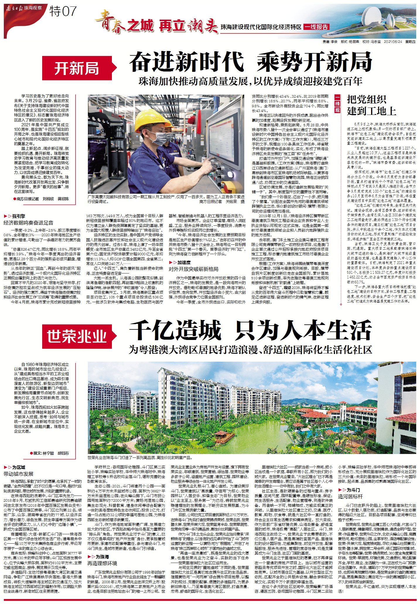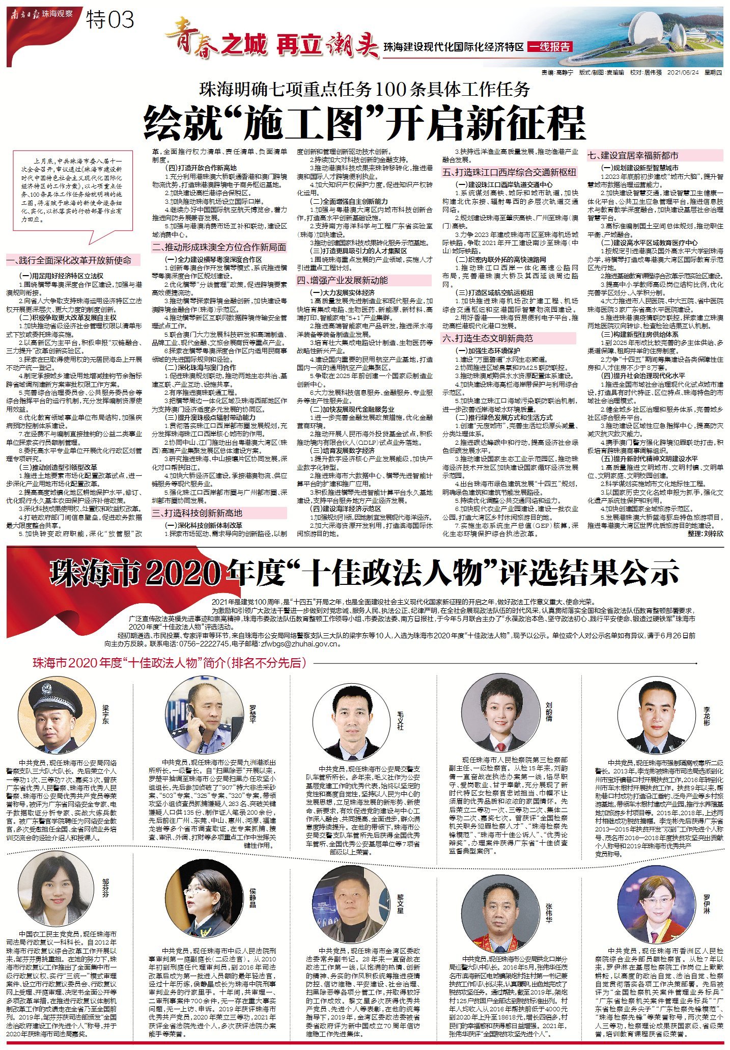 今年3月,广东省委、省政府印发《关于支持珠海建设新时代中国特色社会主义现代化国际化经济特区的意见》;两个月后,中共珠海市委八届十一次全会召开,制定100项具体工作任务,绘就了现代化国际化经济特区的“施工图”,吹响了全面奋进新征程的嘹亮号角。