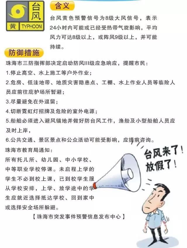受台风环流影响,预计20-21日珠海市有暴雨到大暴雨,沿岸和海面阵风10-11级,台风黄色预警信号正在生效,请注意防御。台风来临,这些安全事项要注意!