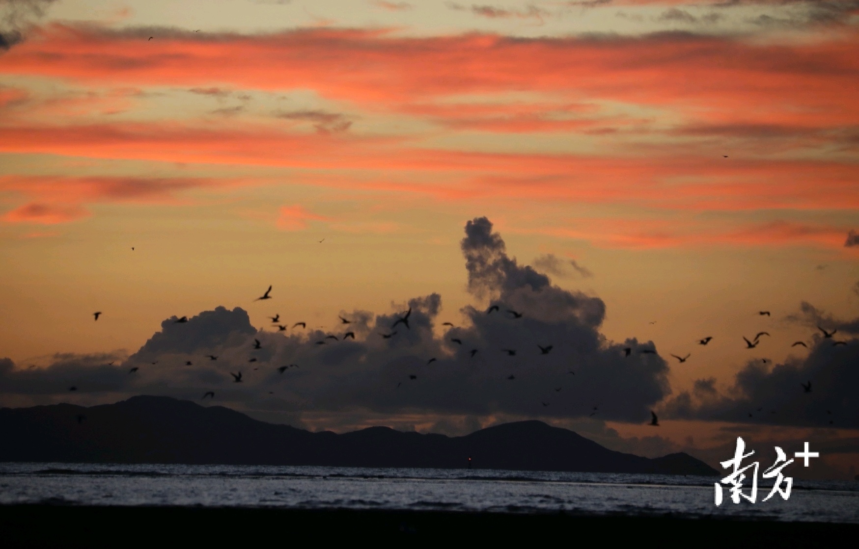 日出时分,早起的海鸥与朝霞共舞 南方+ 关铭荣 拍摄