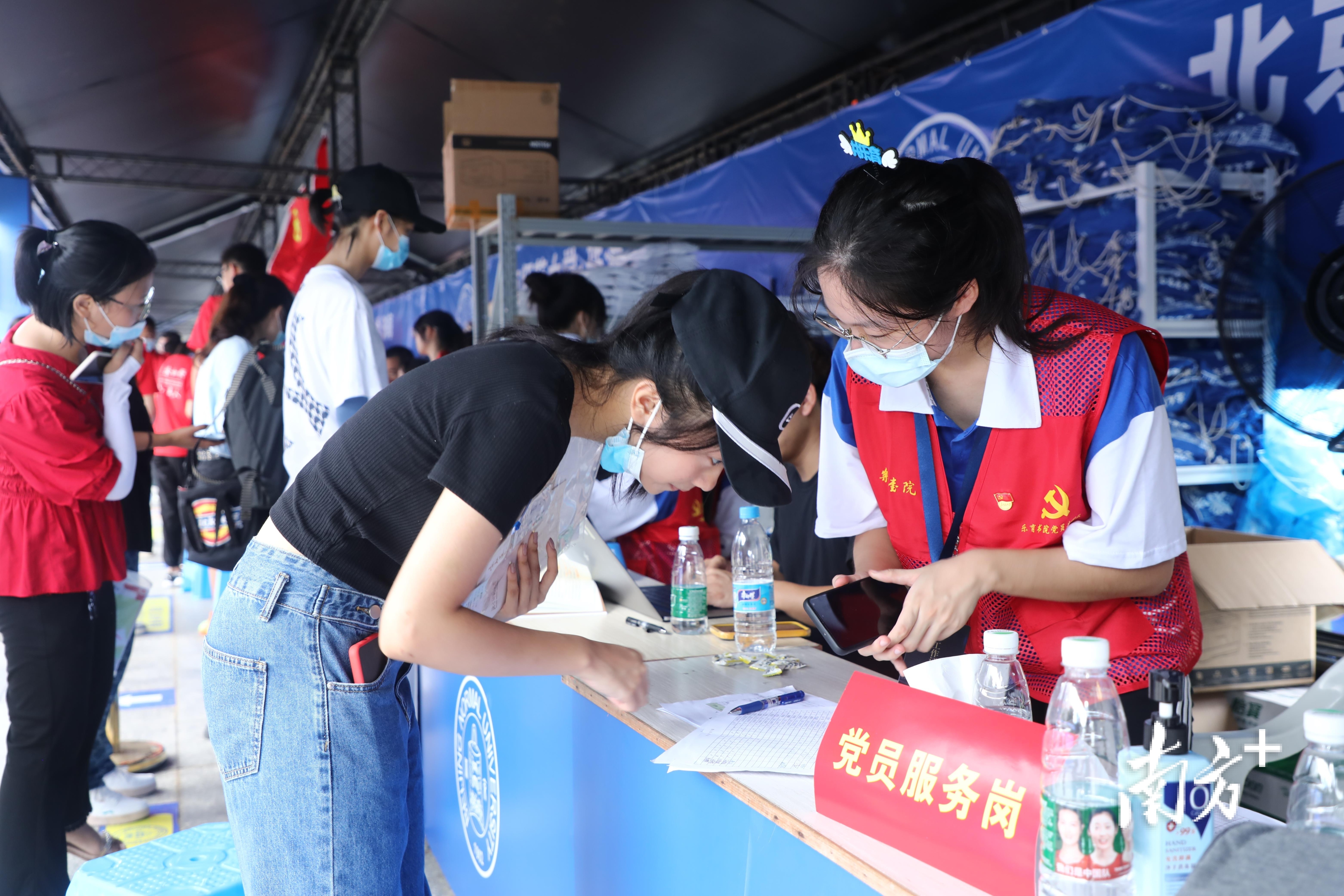 迎新服务中,北师大珠海校区各级基层党组织充分发挥师生党员的主力军作用。机关党委党员冲锋在前,暑假期间率先投入各项开学准备工作;迎新期间组建教师党员志愿服务队、学生党员志愿者队,新生一入校就有党员志愿者提供引导服务。