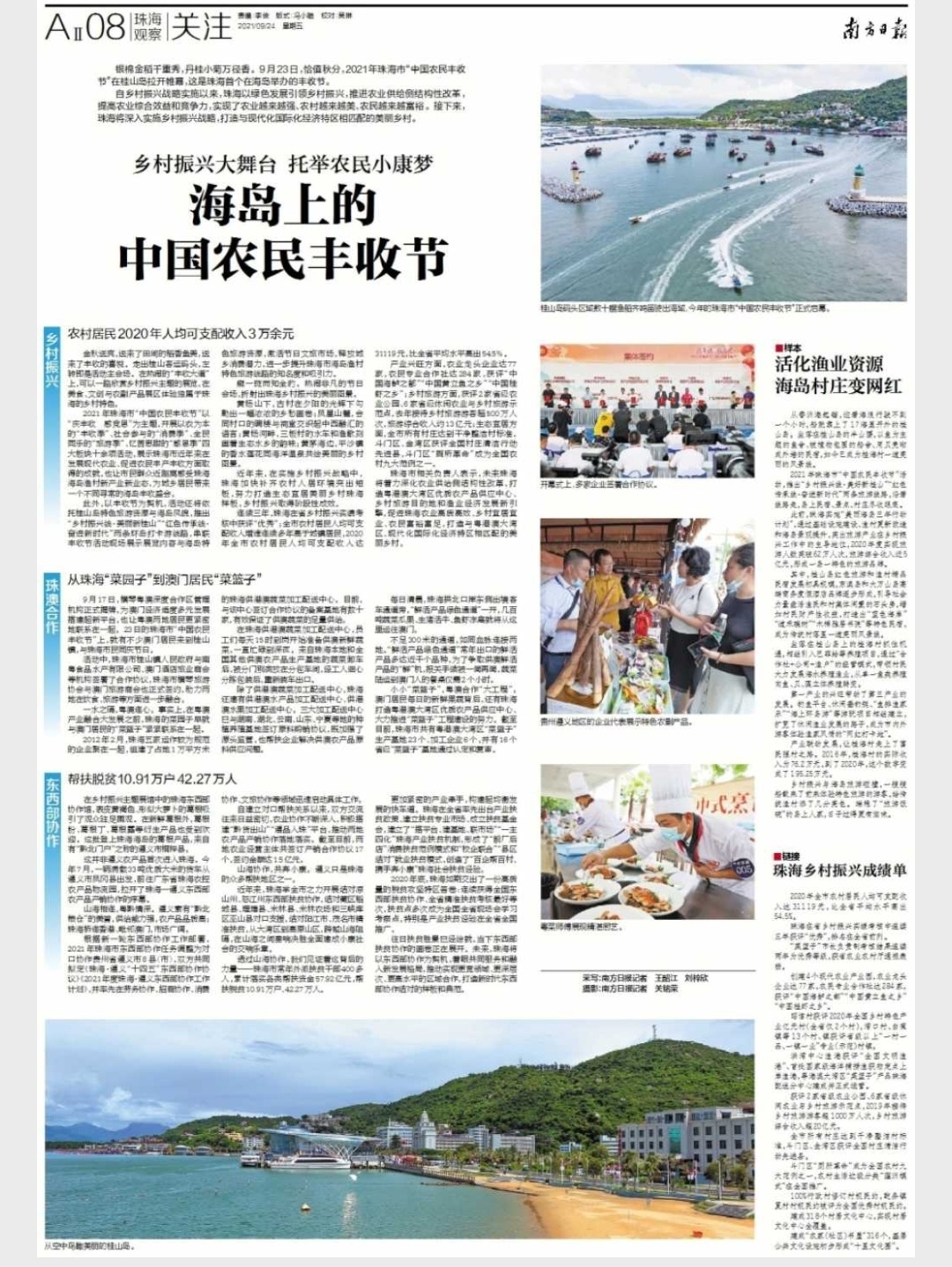 银棉金稻千重秀,丹桂小菊万径香。9月23日,恰值秋分,2021年珠海市“中国农民丰收节”在桂山岛拉开帷幕,这是珠海首个在海岛举办的丰收节。