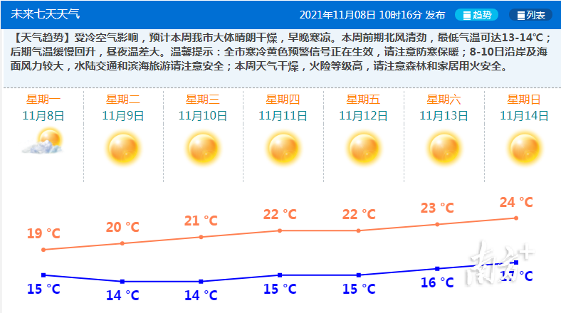 值得一提的是,南方+记者8日上午“扫街”发现,本轮降温下,珠海不少市民又进入了“乱穿衣”模式,有的披上薄羽绒、毛衣,有的却仍穿着短衣短裤。南方+温馨提醒各位南友,记得早晚做好防寒保暖哦。