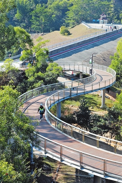 作为珠海市民生重点项目,景山道在建设过程中一直秉承低干扰、轻介入措施,步道作为景观带全线铺装有消防水管,既是防火隔离带,又是消防救援生命线,兼具景观并承担护卫绿色家园重任。在景山道建设中,针对板樟山南侧山麓常年遭受台风虫害侵蚀,建设单位进行了一系列林相改造,伴随着四季更迭,植被将以更有层次感的全新面貌迎接广大市民、游客。未来,景山道全线贯通,还将为广大市民、游客提供公园停车服务。