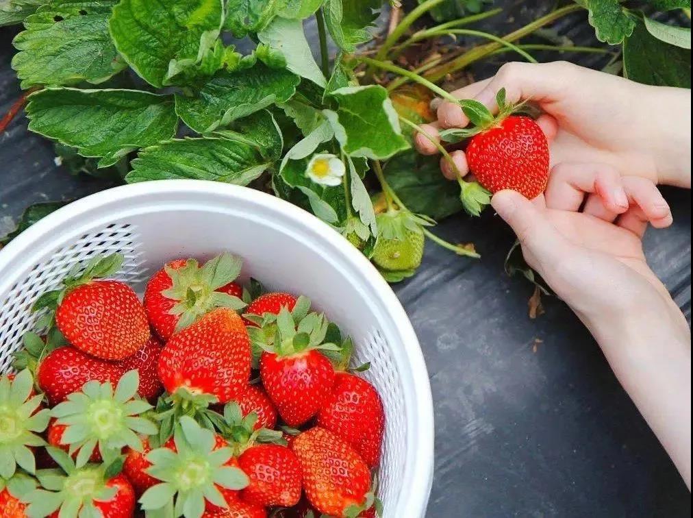 在十里莲江的草莓基地,一簇簇绿叶间,红彤彤的草莓密密匝匝、香气扑鼻,好不诱人。带上萌娃,享受草莓采摘的乐趣。
