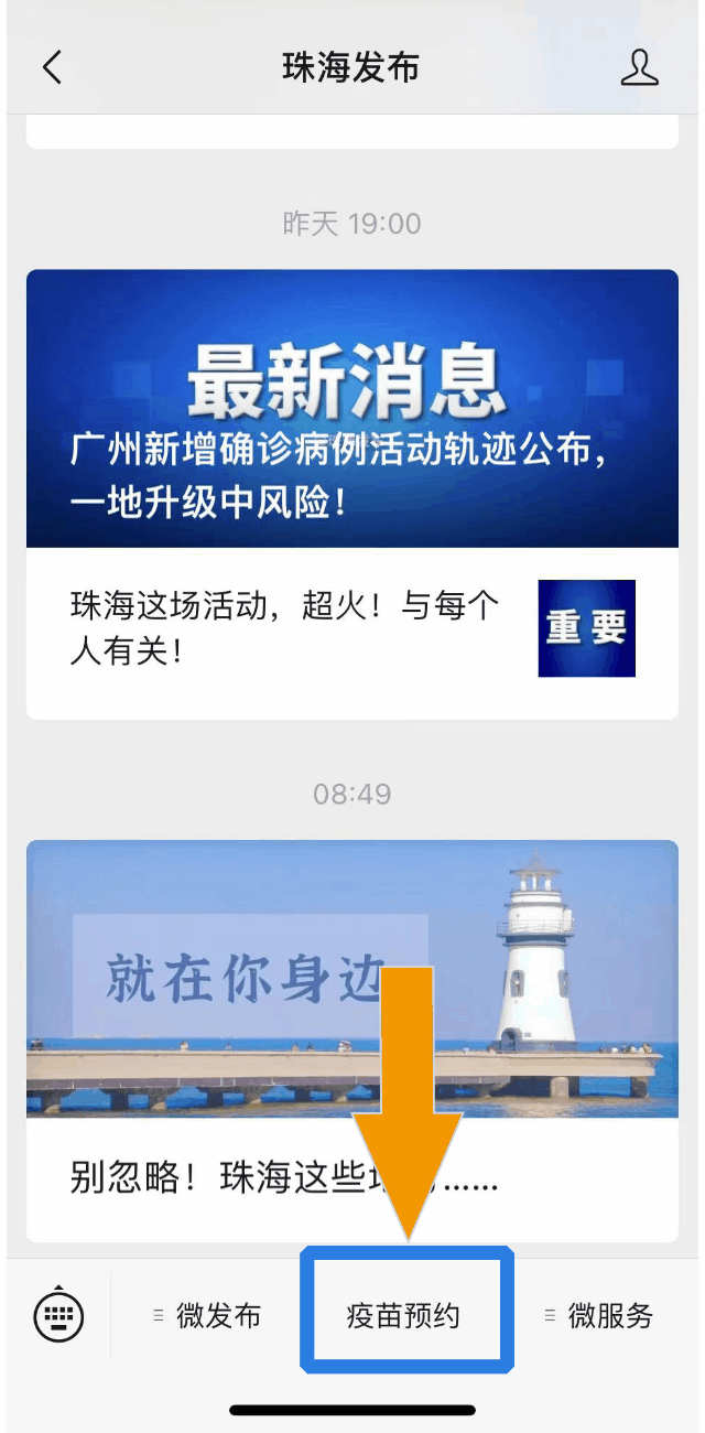 健康申报以“珠海发布”微信公众号为例▽