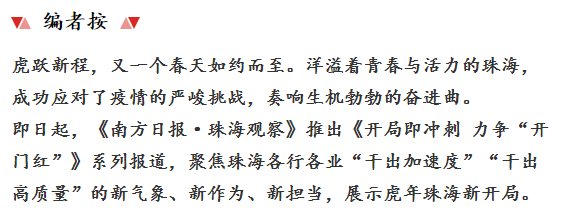 一年春作首,万事竞争先。面对前所未有的发展机遇,珠海招商引资工作唯有“虎力全开”,争分夺秒、全力攻坚,才能在新的一年努力取得更多实实在在的成果,助力珠海高质量建设现代化国际化经济特区。