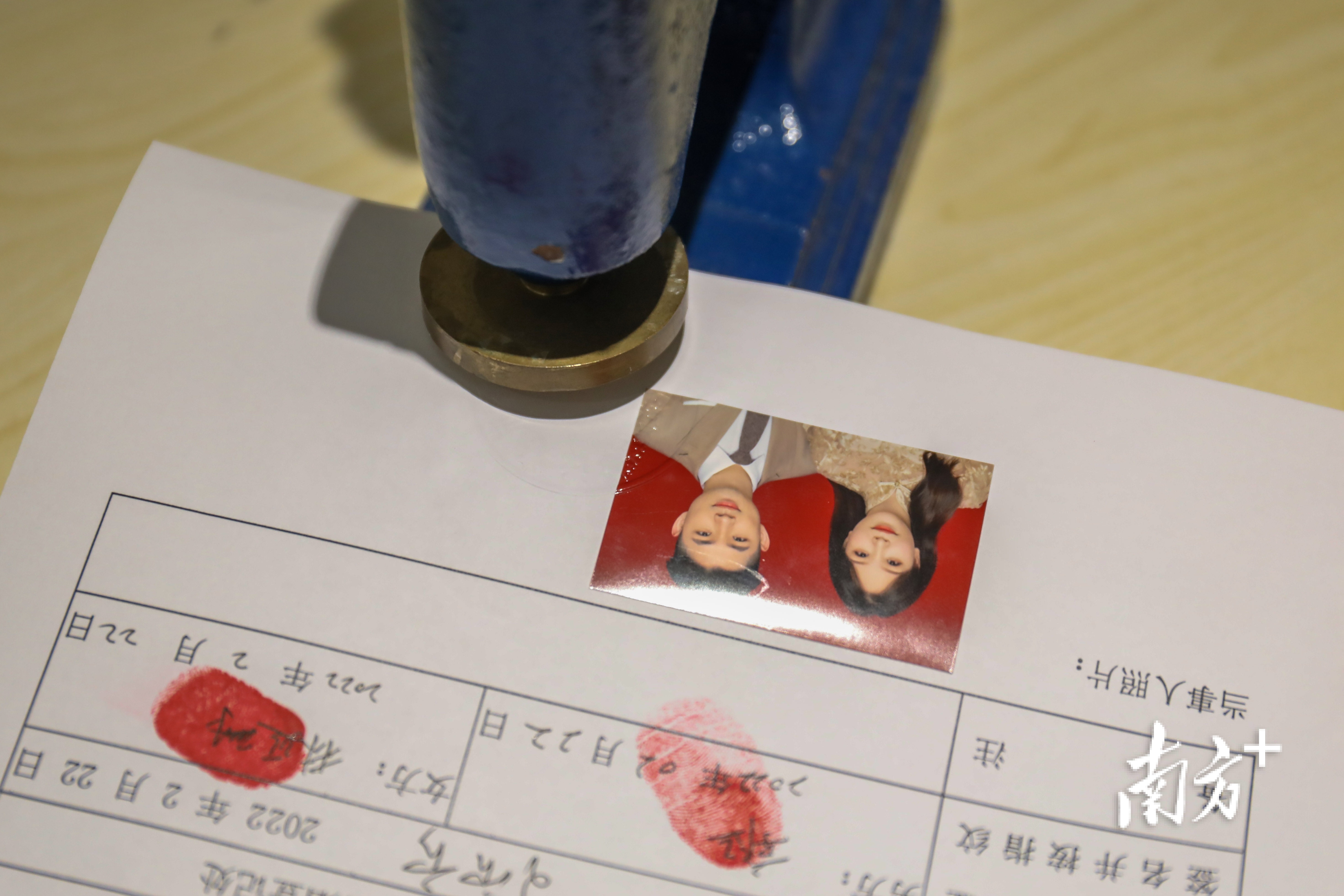 盖下钢印,结婚证正式生效啦! 南方+ 钱文攀 拍摄