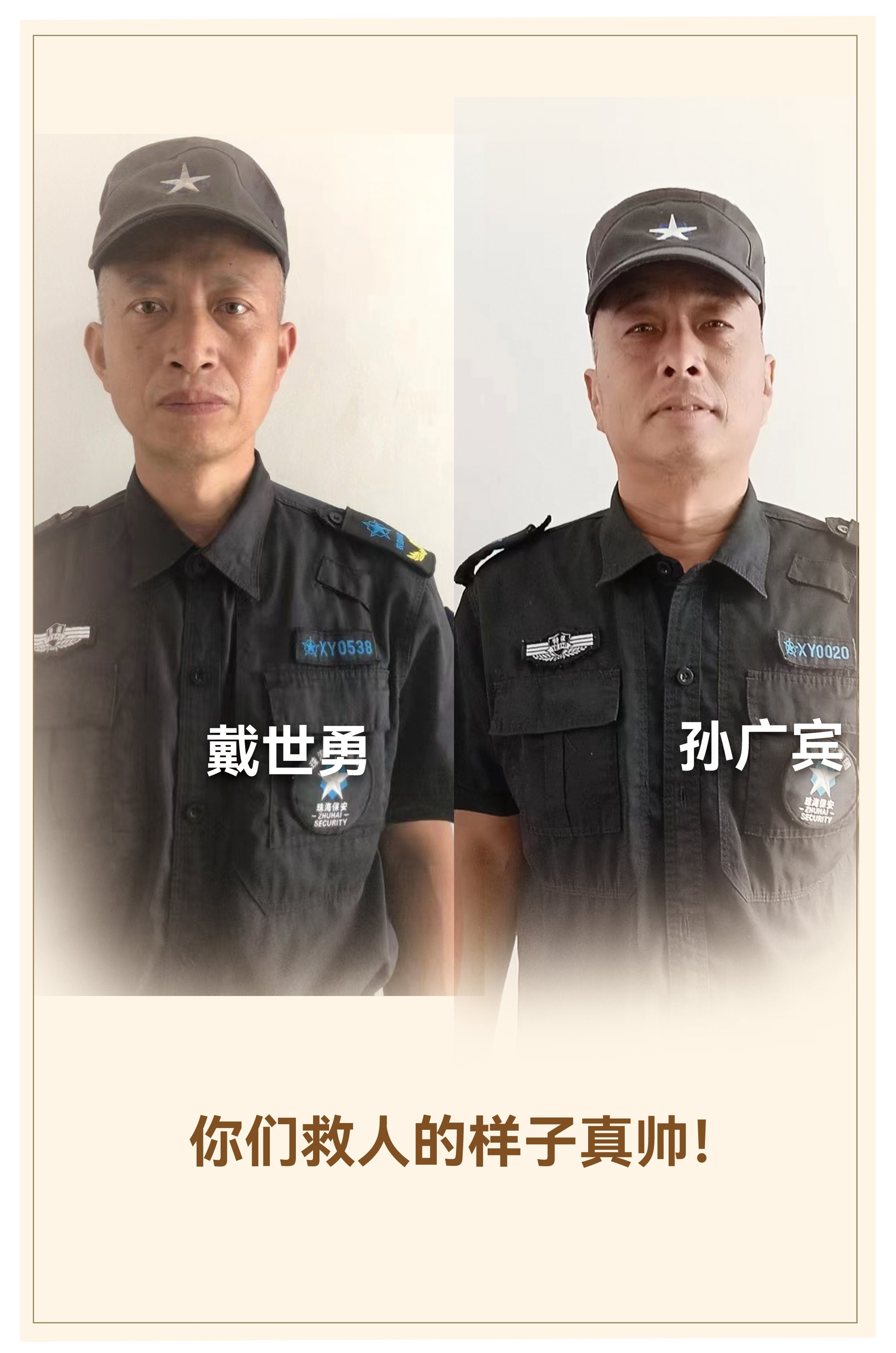 5月27日,珠海下起暴雨,上午8时10分左右,路人发现明华小学一名女学生在上学途中突然晕倒,立即呼叫附近造贝学校的校园特保救助。特保员戴世勇、孙广宾赶到后,立即扶起晕倒的女学生,冲向校内。