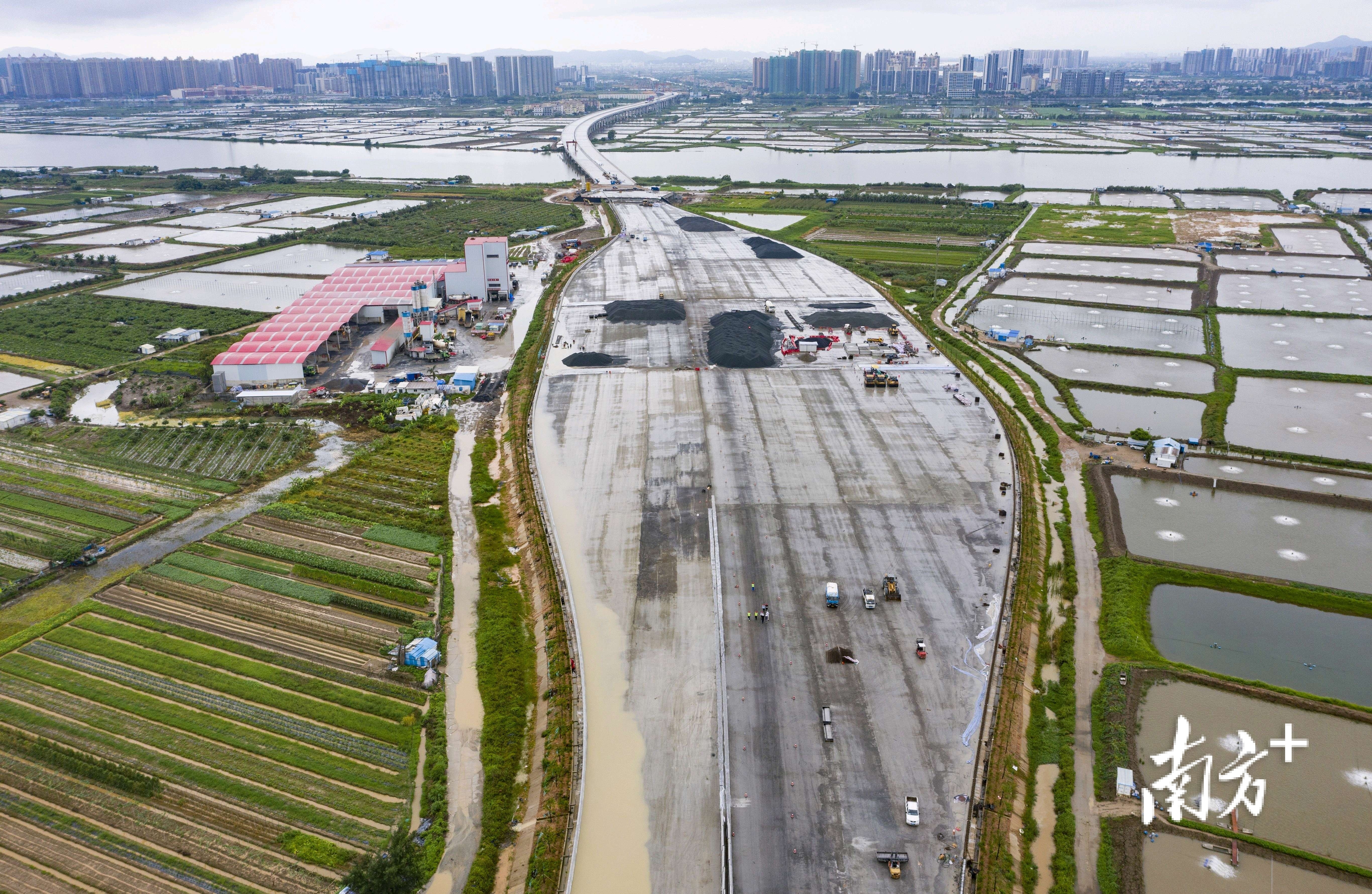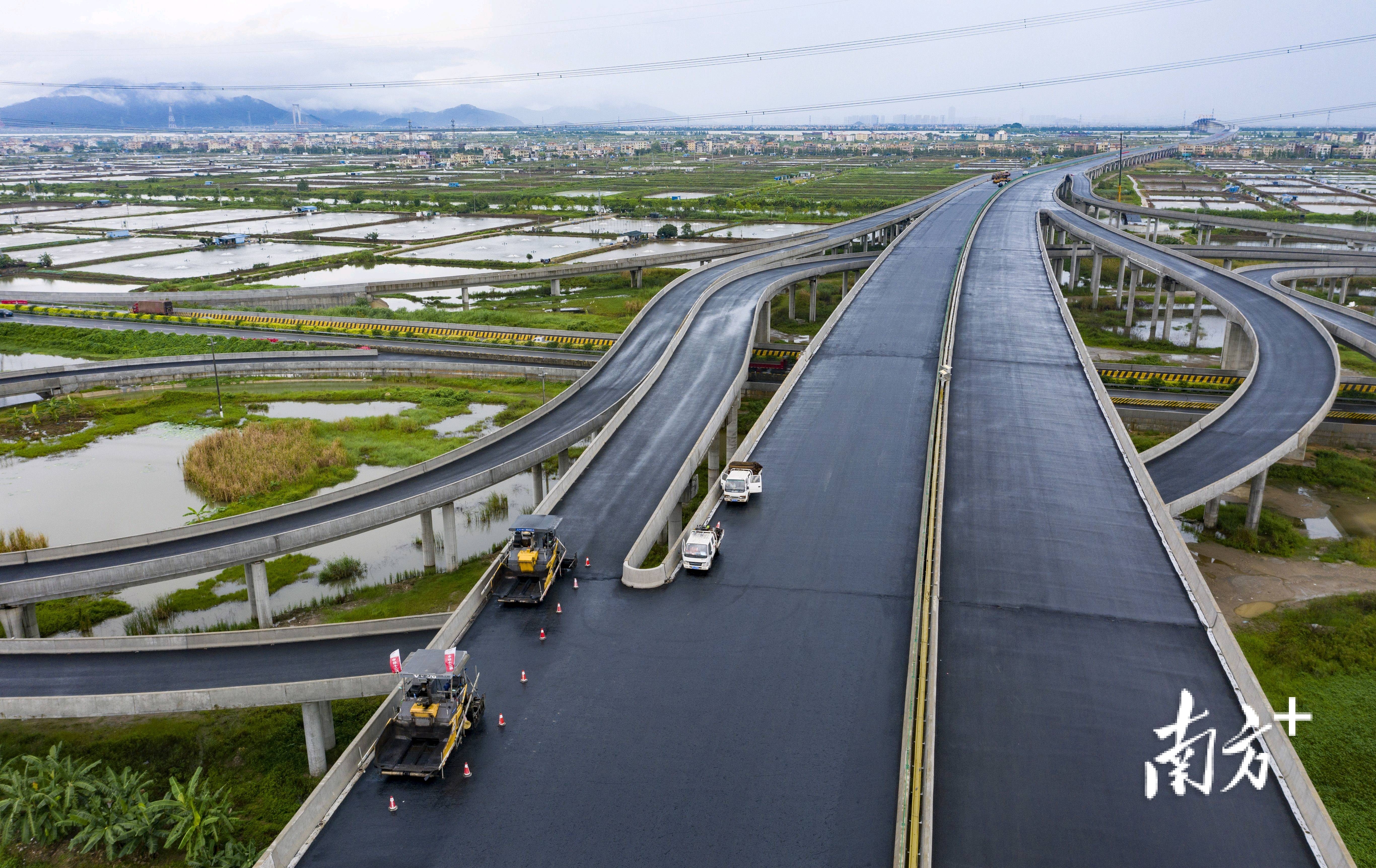 香海大桥支线工程上冲至坦洲枢纽互通路段,也已完成沥青铺设、道路划线等。 南方+ 关铭荣 拍摄