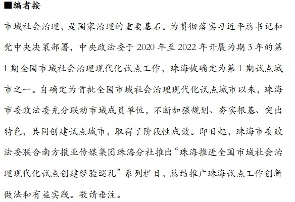 珠海推进全国市域社会治理现代化试点创建经验巡礼⑤