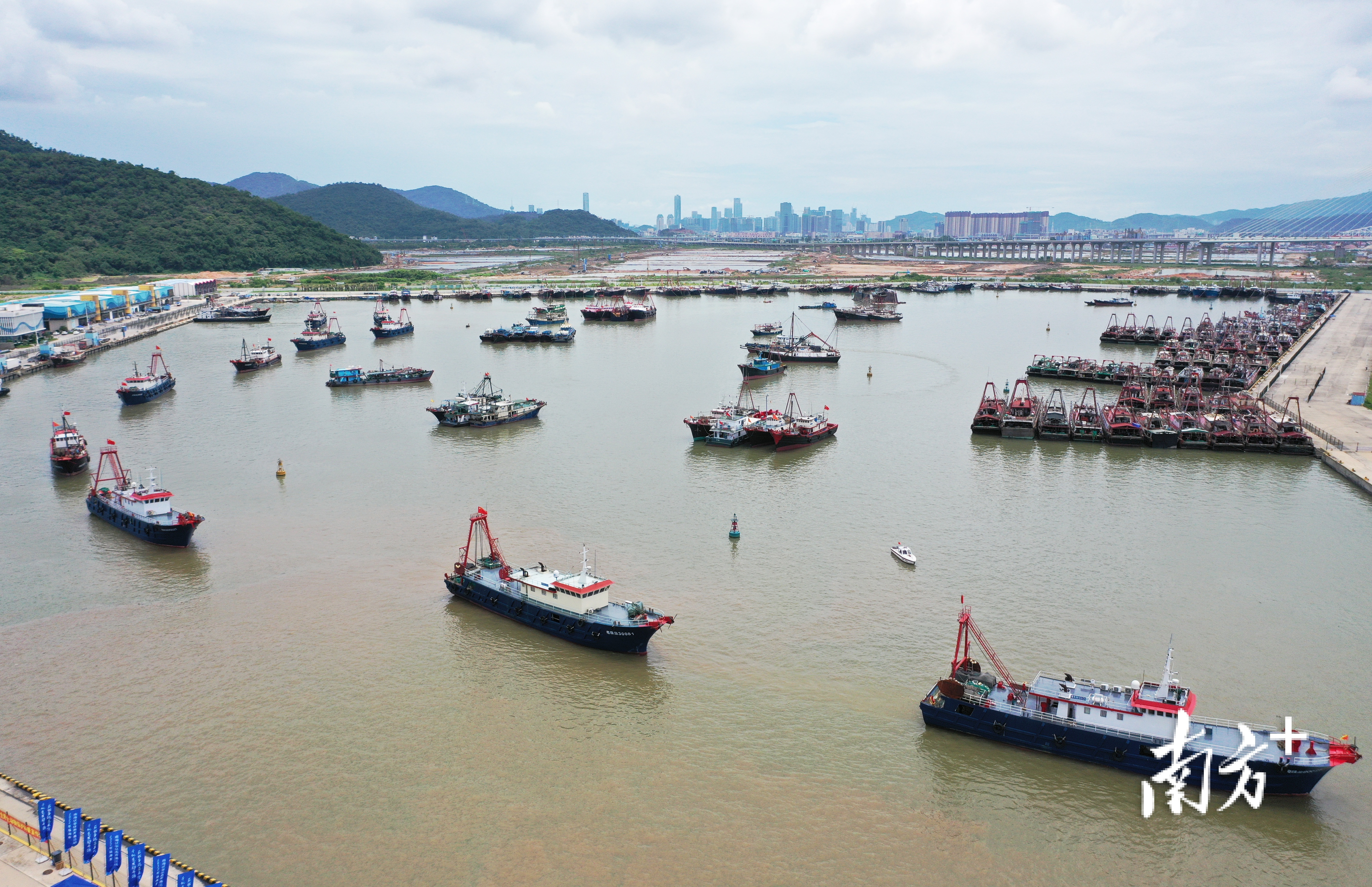 相关部门在现场组织渔民安全出海。 南方+ 关铭荣 拍摄