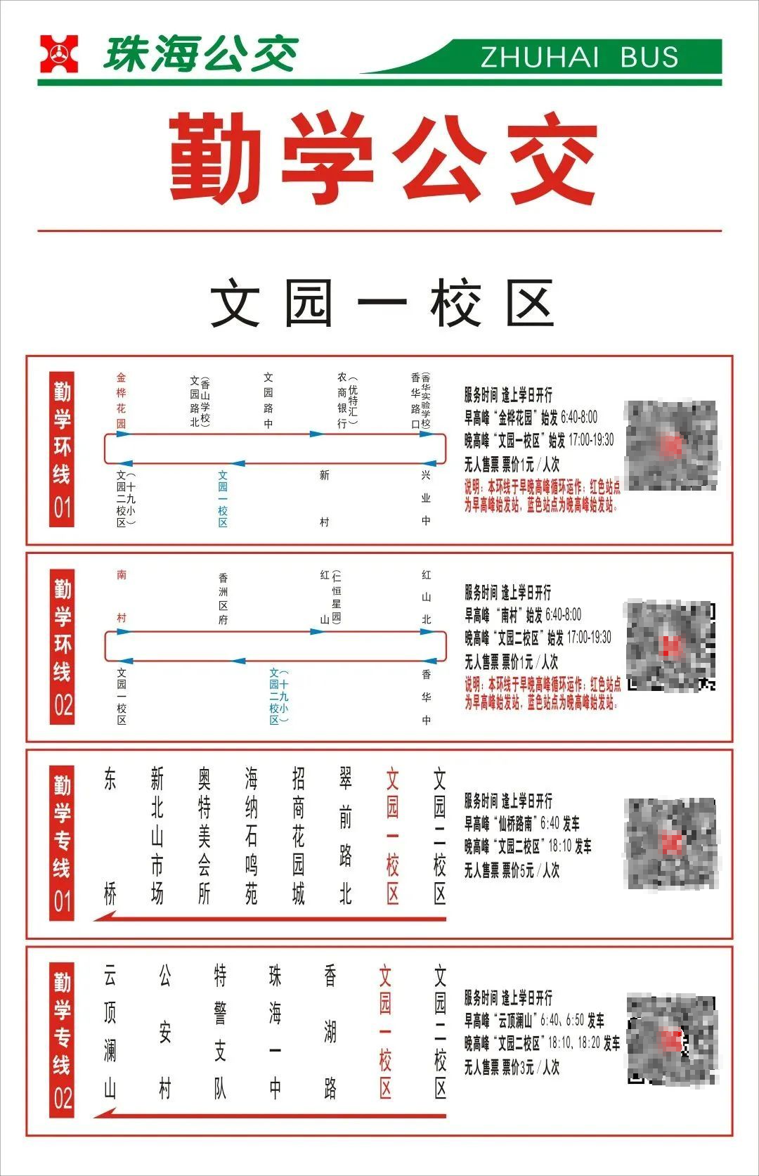 (各上、下站点和发车时间以最新公布为准,勤学专线01暂停运营)